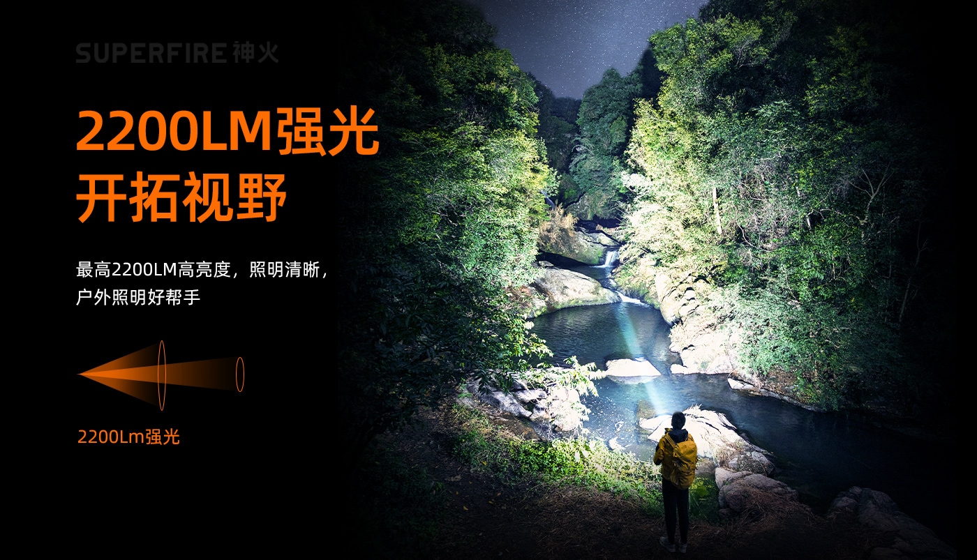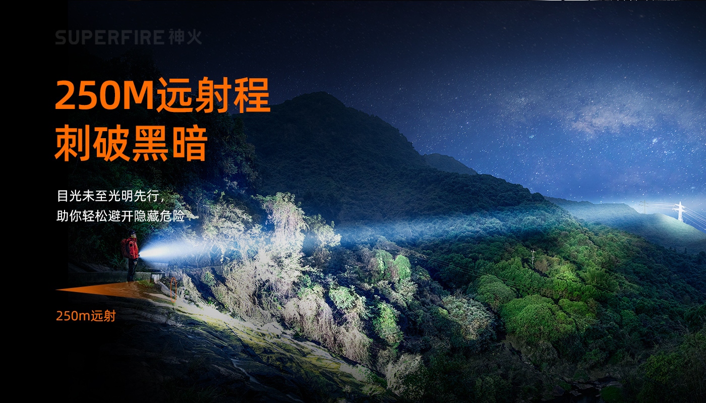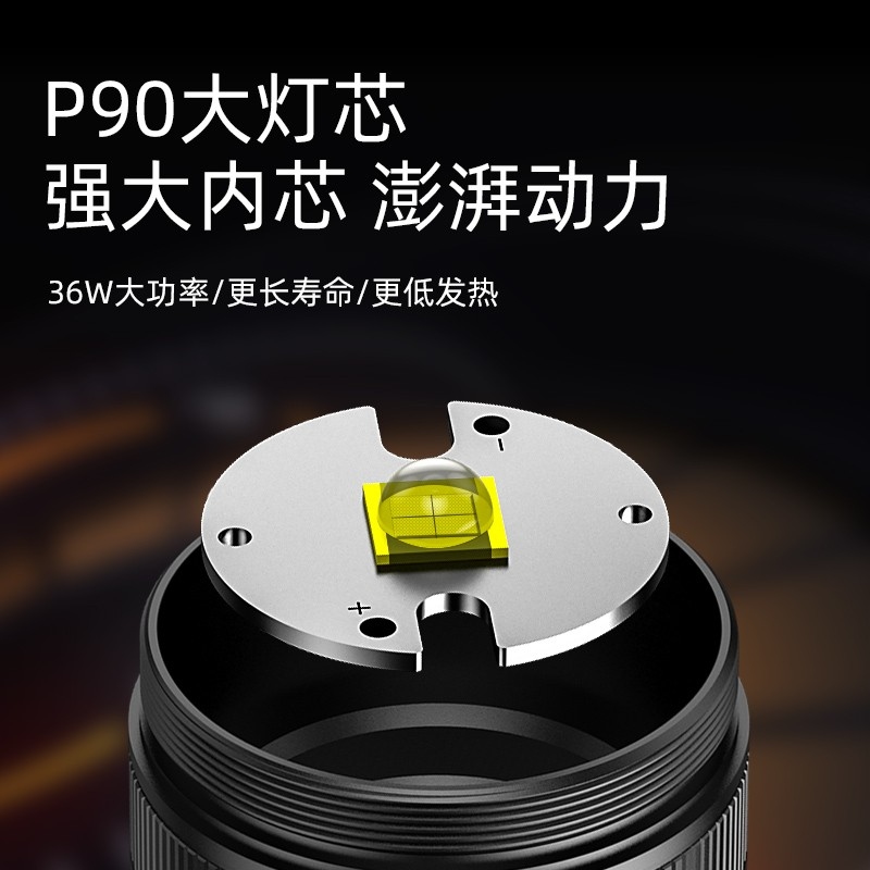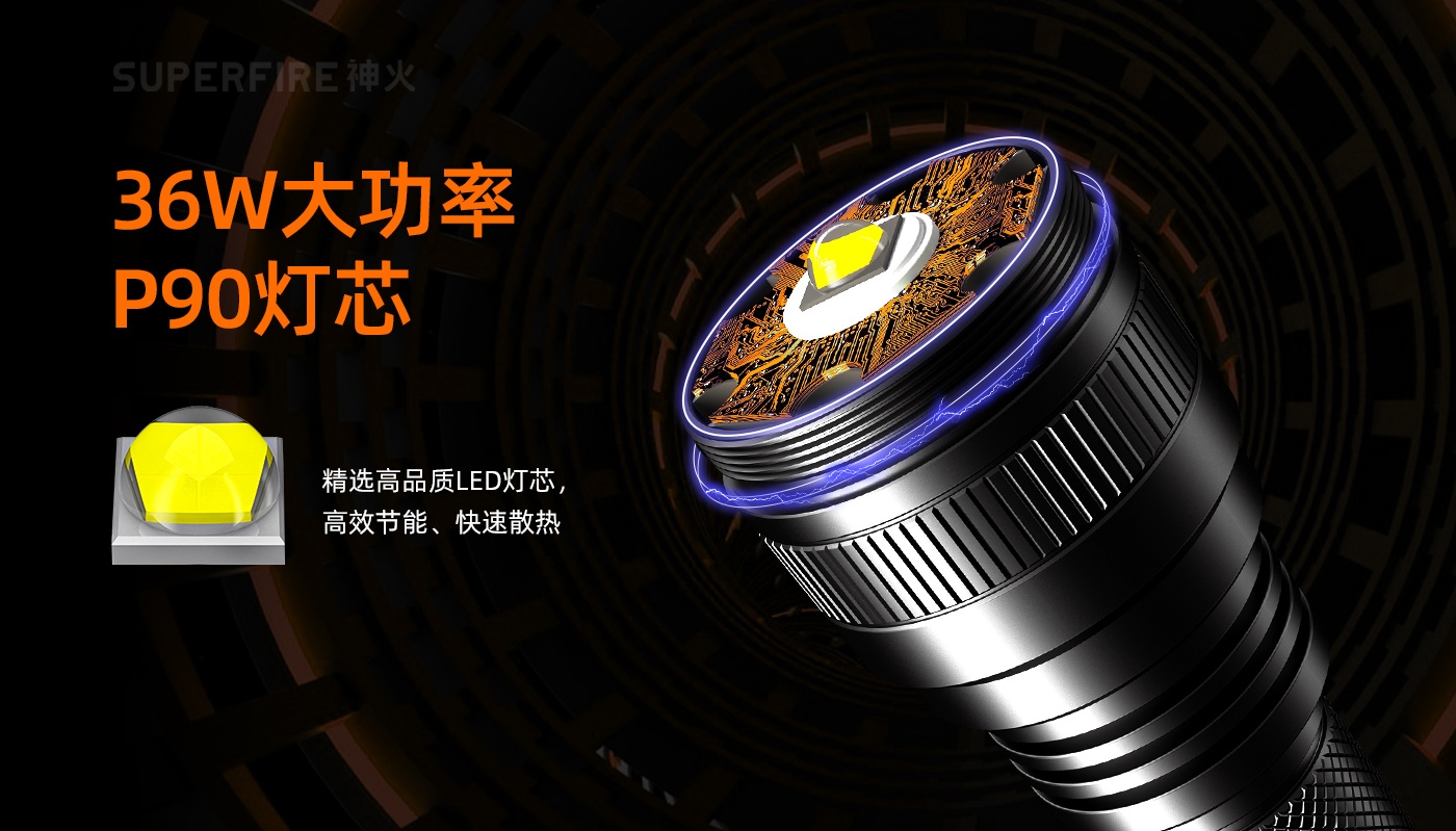 P90大功率灯芯,2200Lm高亮度,250m射程;