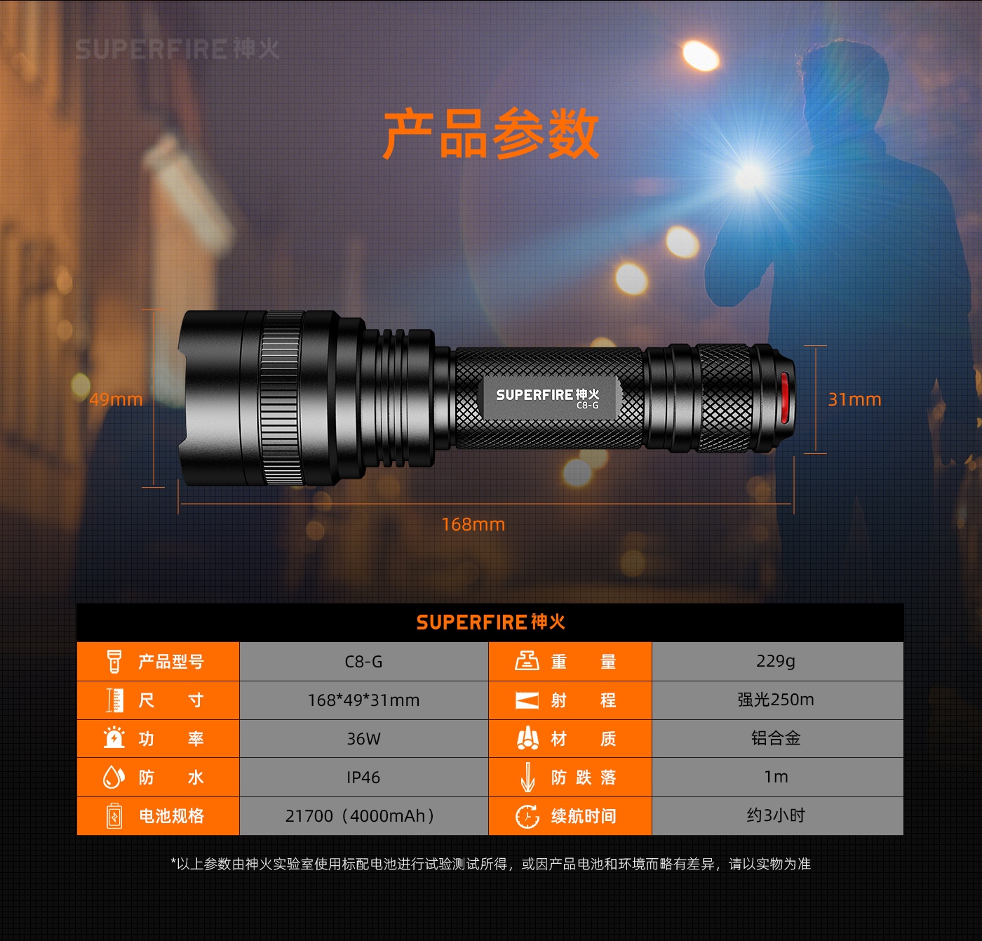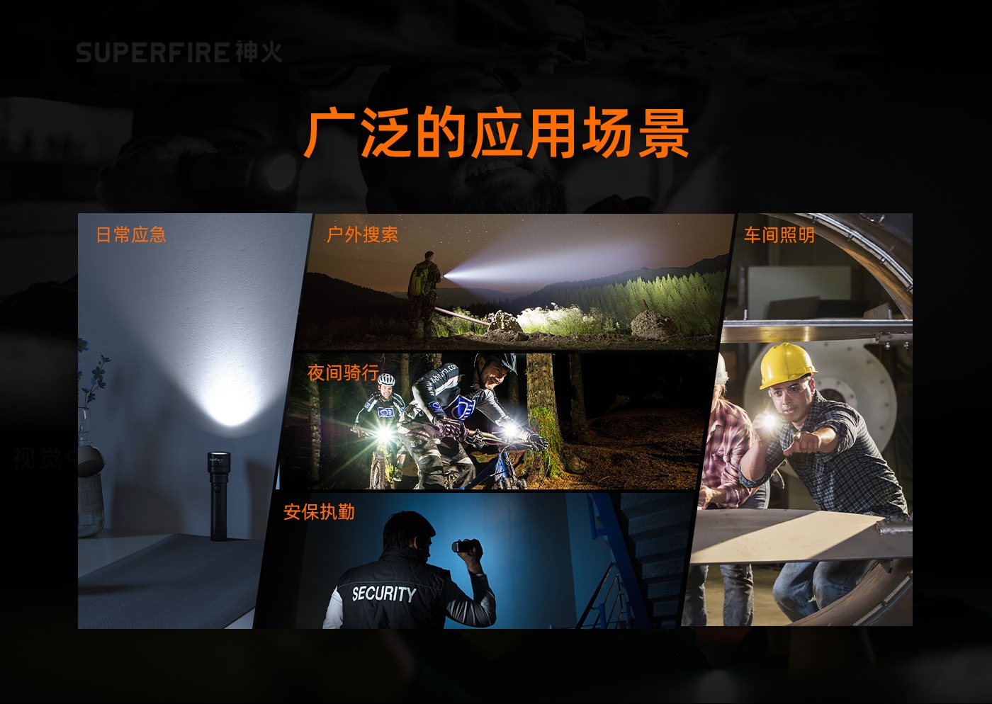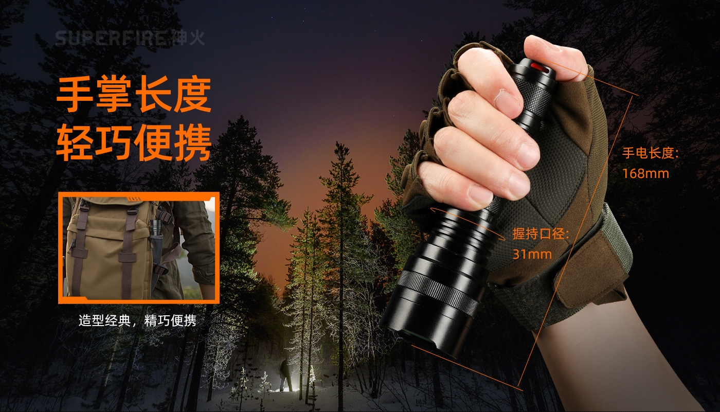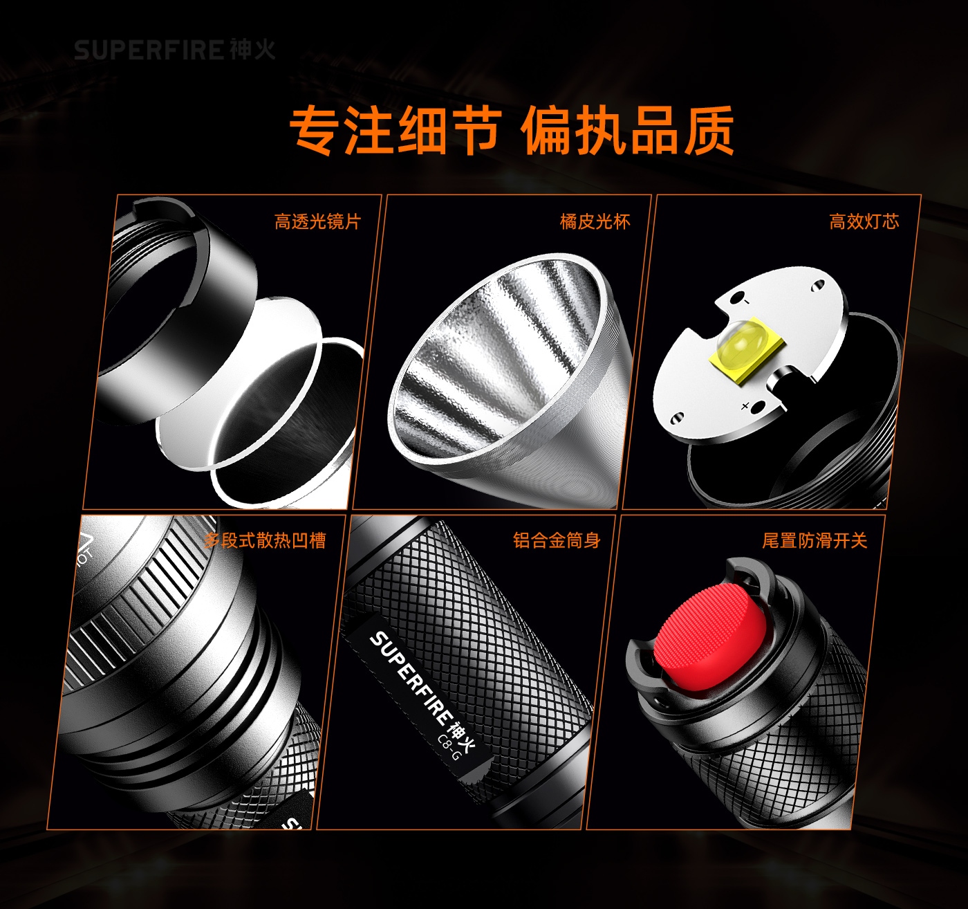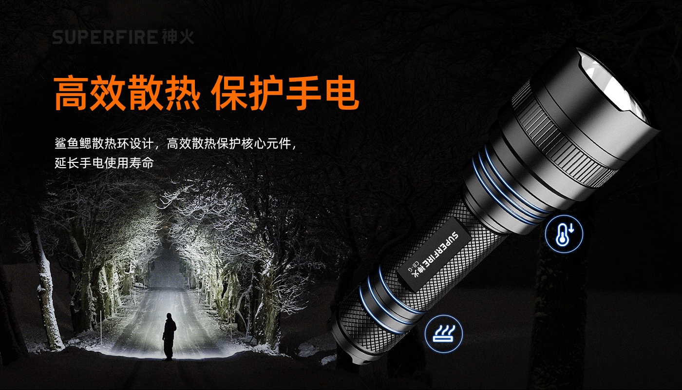 1、千米远射,射程更远,光斑更聚焦。 2、进口灯珠,亮度高,照明效果更好。 3、前后双按键,光源一键点亮,高亮瞬间开启。