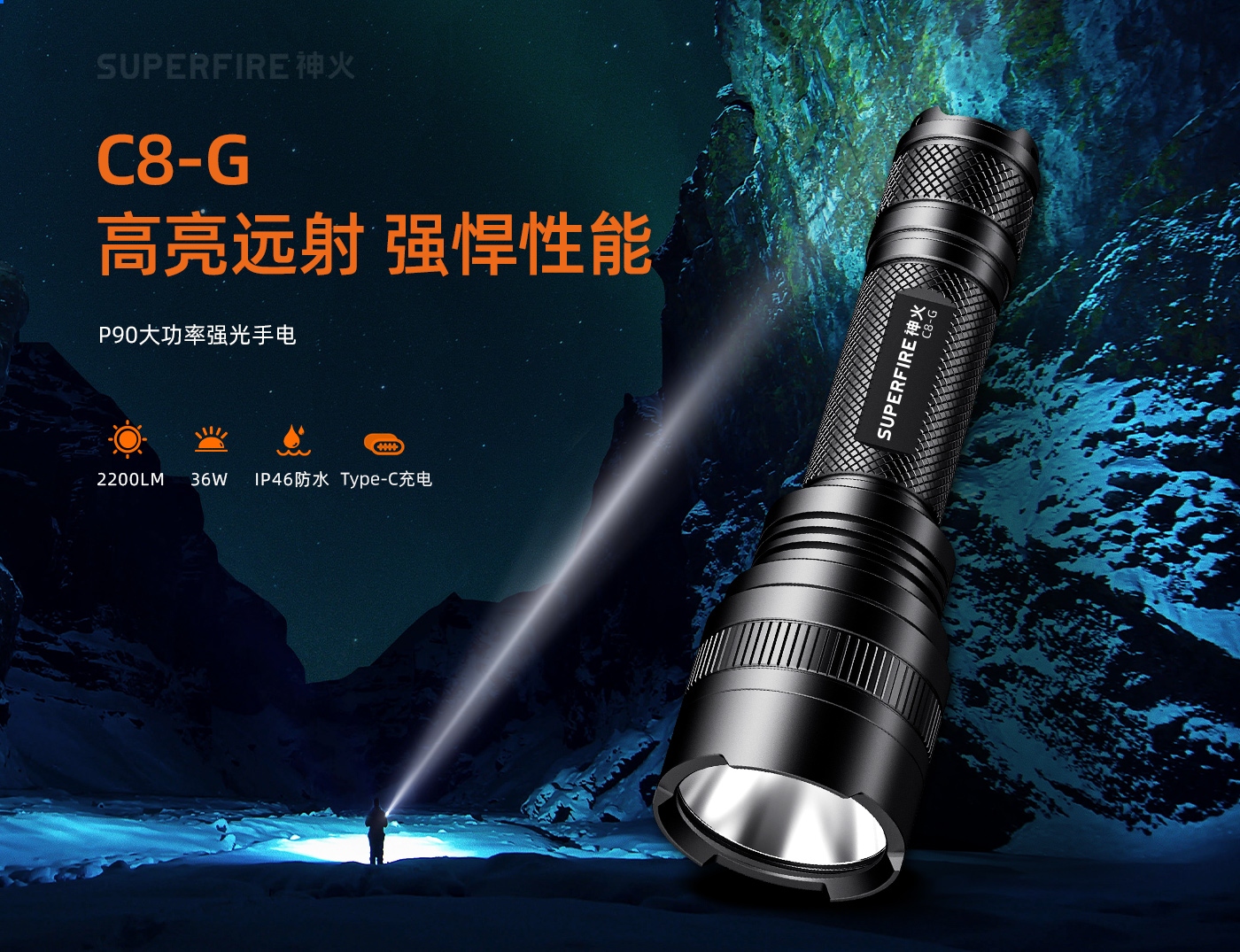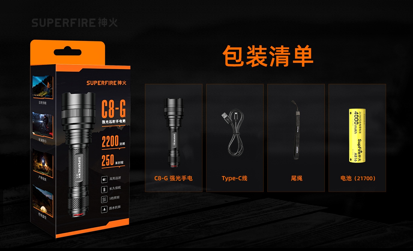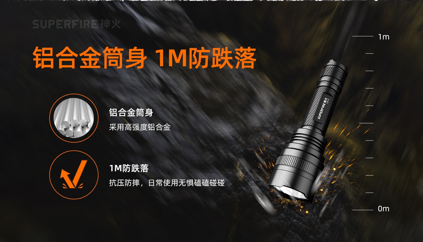 四档调光 Type-C充电 电量显示 铝合金筒身 持久续航 强力防水