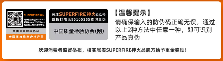 (4)产品链接首图必须为神火品牌最新商标 LOGO“SUPERFIRE 神火”。