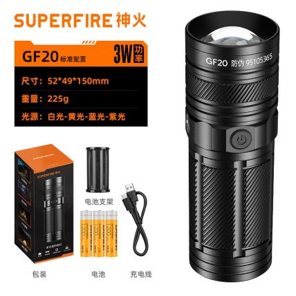白色强光:1100LM/ 黄色强光:1100LM/蓝光波长:450nmLM