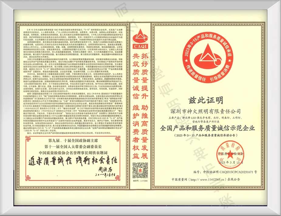 全国照明灯具行业质量领先企业