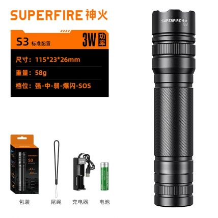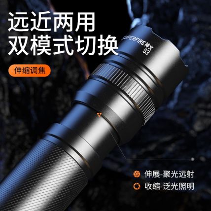 伸缩调焦,5档调节强光远射,快充接口充电