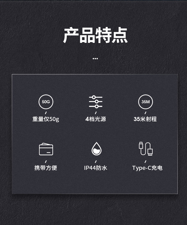 四档调光 Type-C充电 电量显示 铝合金筒身 持久续航 强力防水
