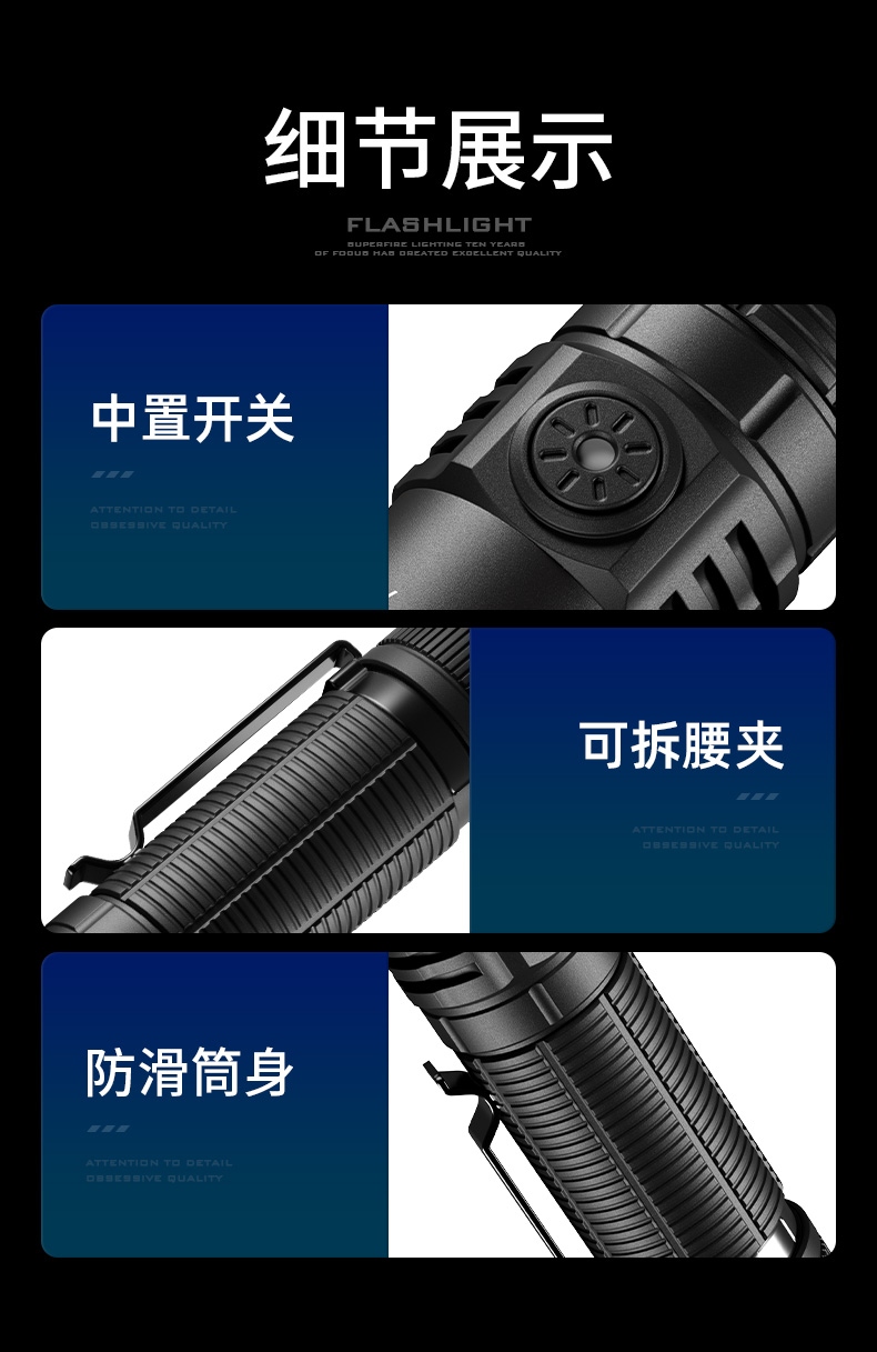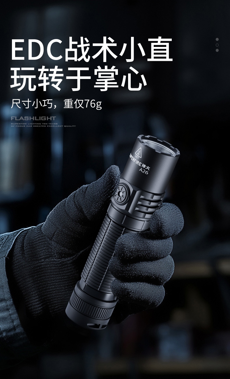 4、定焦小直手电,强光照明,光斑明亮,效果更佳。
