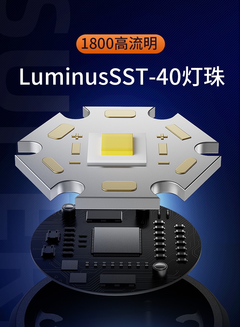 1、大尺寸铝合金光杯,光斑更圆润。 2、新型高亮远射灯珠,40W大功率,亮度高,照明效果好。