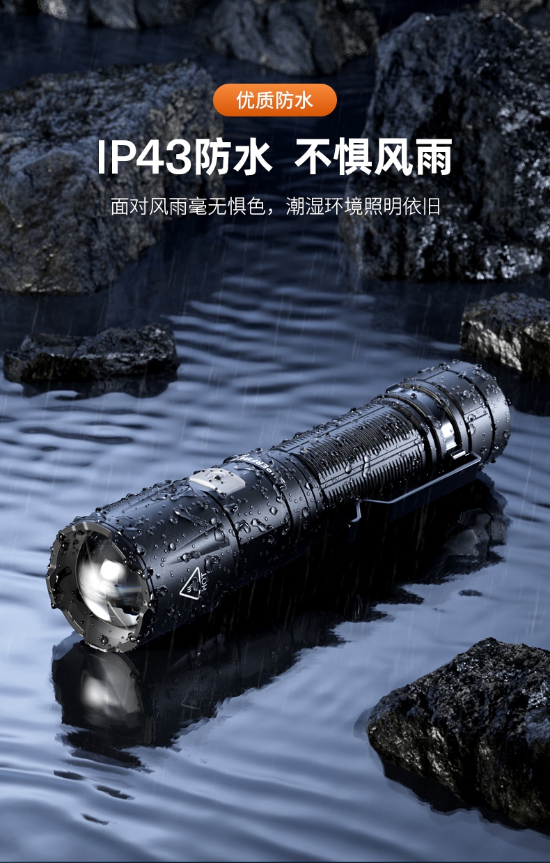 四档调光 Type-C充电 电量显示 铝合金筒身 持久续航 强力防水