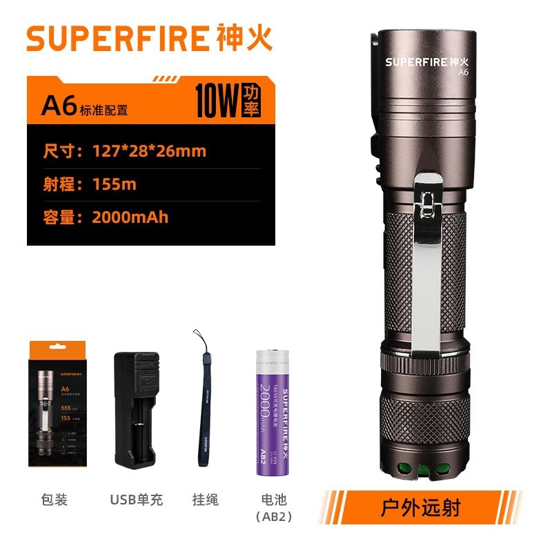 1、千米远射,射程更远,光斑更聚焦。 2、进口灯珠,亮度高,照明效果更好。 3、前后双按键,光源一键点亮,高亮瞬间开启。