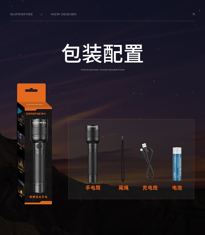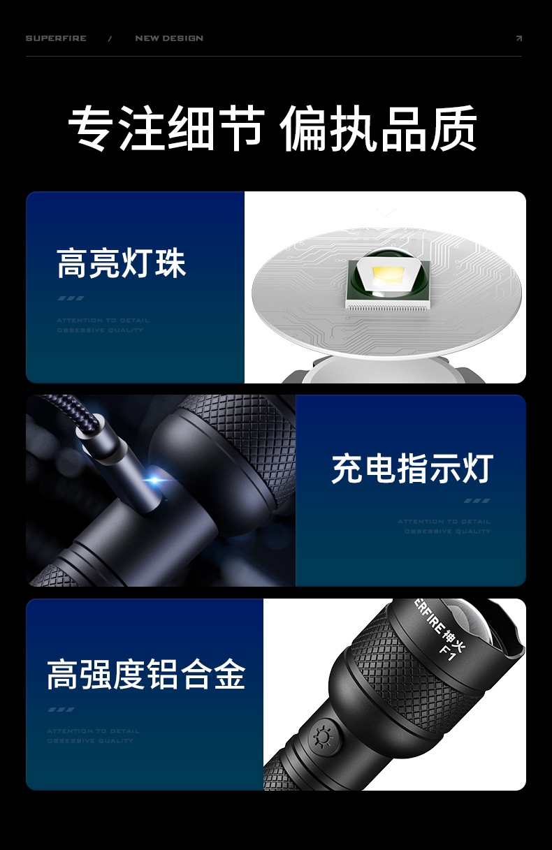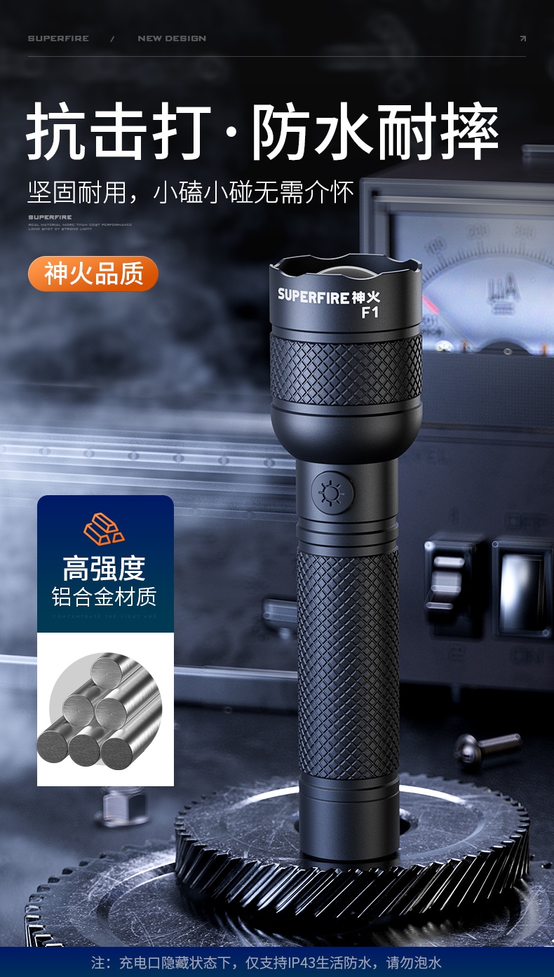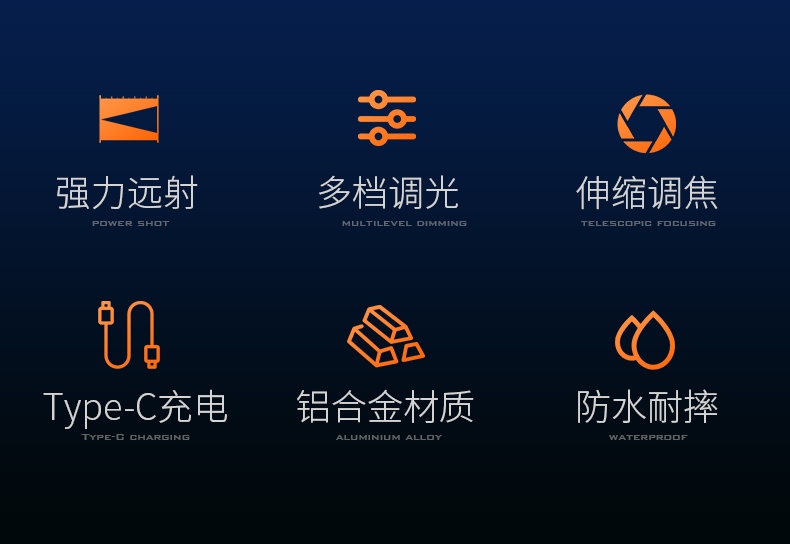 四档调光 Type-C充电 电量显示 铝合金筒身 持久续航 强力防水