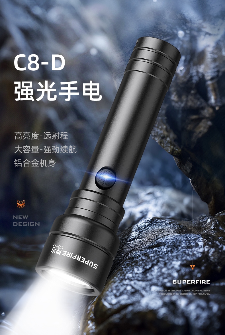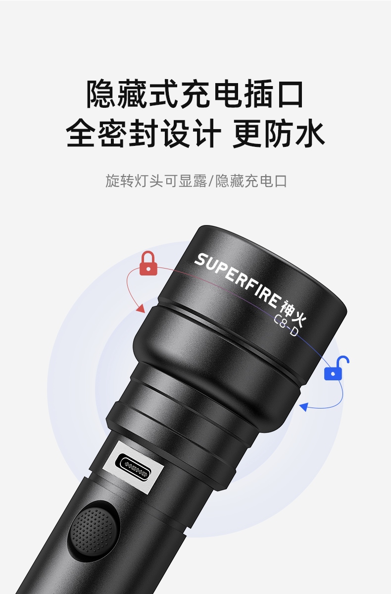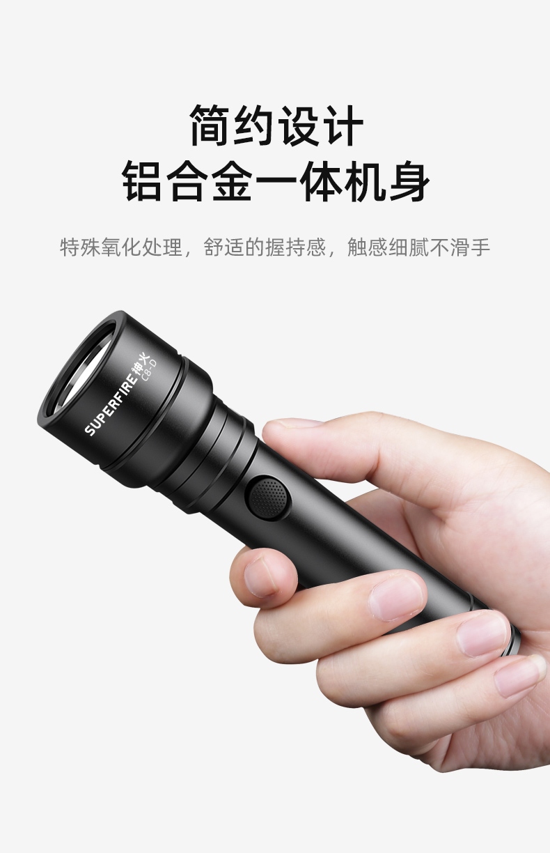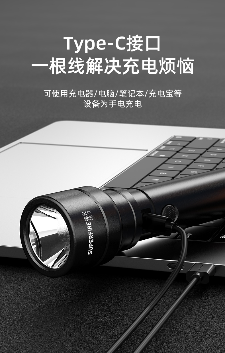 四档调光 Type-C充电 电量显示 铝合金筒身 持久续航 强力防水