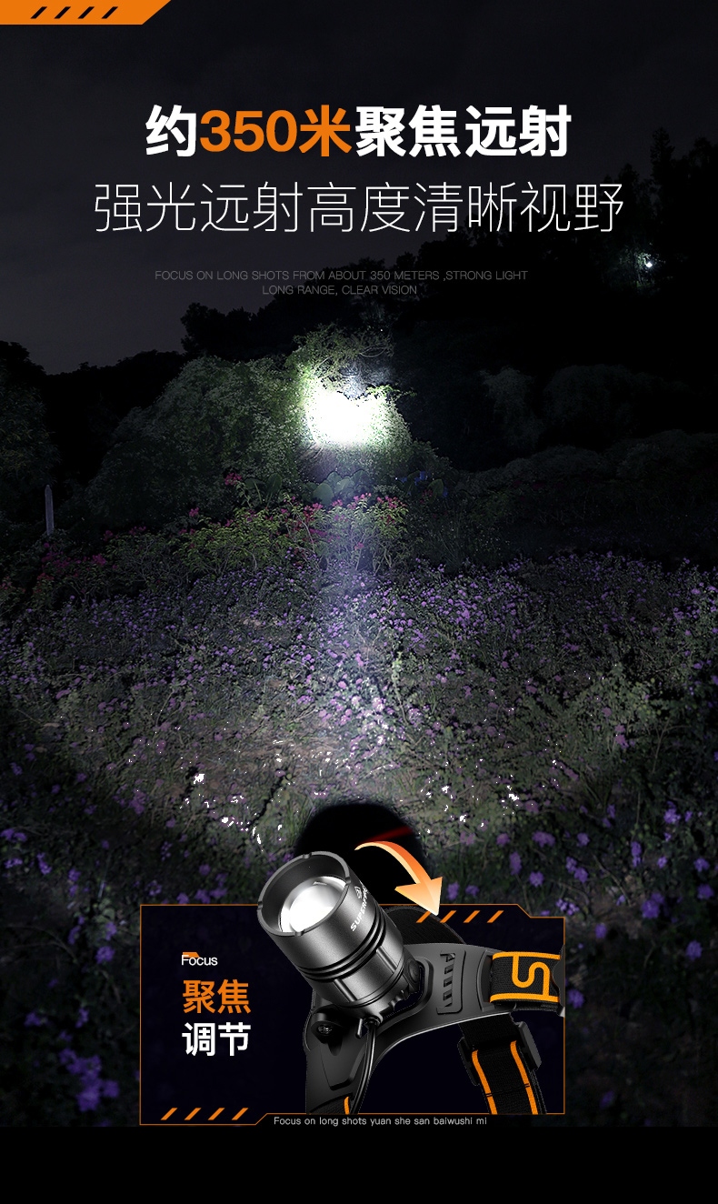 强光亮度,运动头灯,前后均衡设计,轻便不压头,可调节式头灯带,佩戴方便舒适,伸缩调焦,光照范围大,照射距离远,头灯角度调节,超90度角度随意调节,适宜各种环境使用