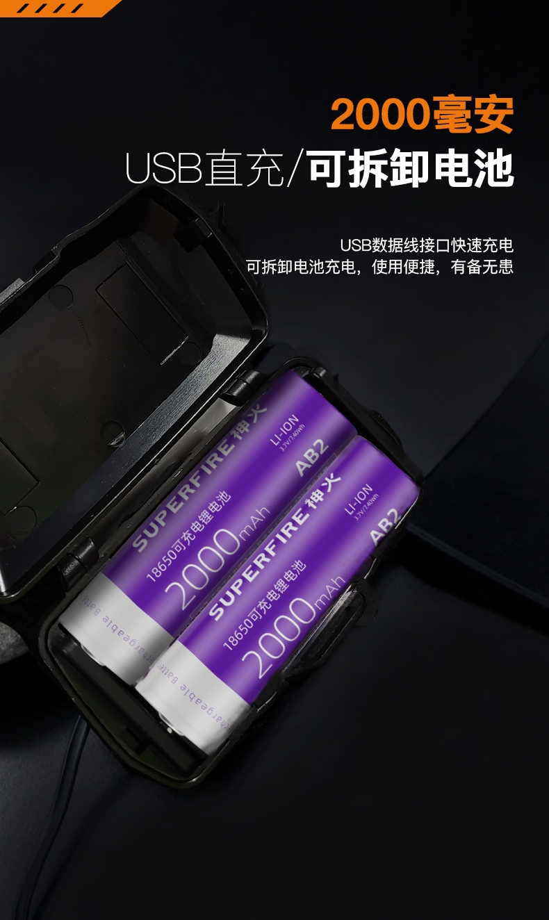 1、千米远射,射程更远,光斑更聚焦。 2、进口灯珠,亮度高,照明效果更好。 3、前后双按键,光源一键点亮,高亮瞬间开启。