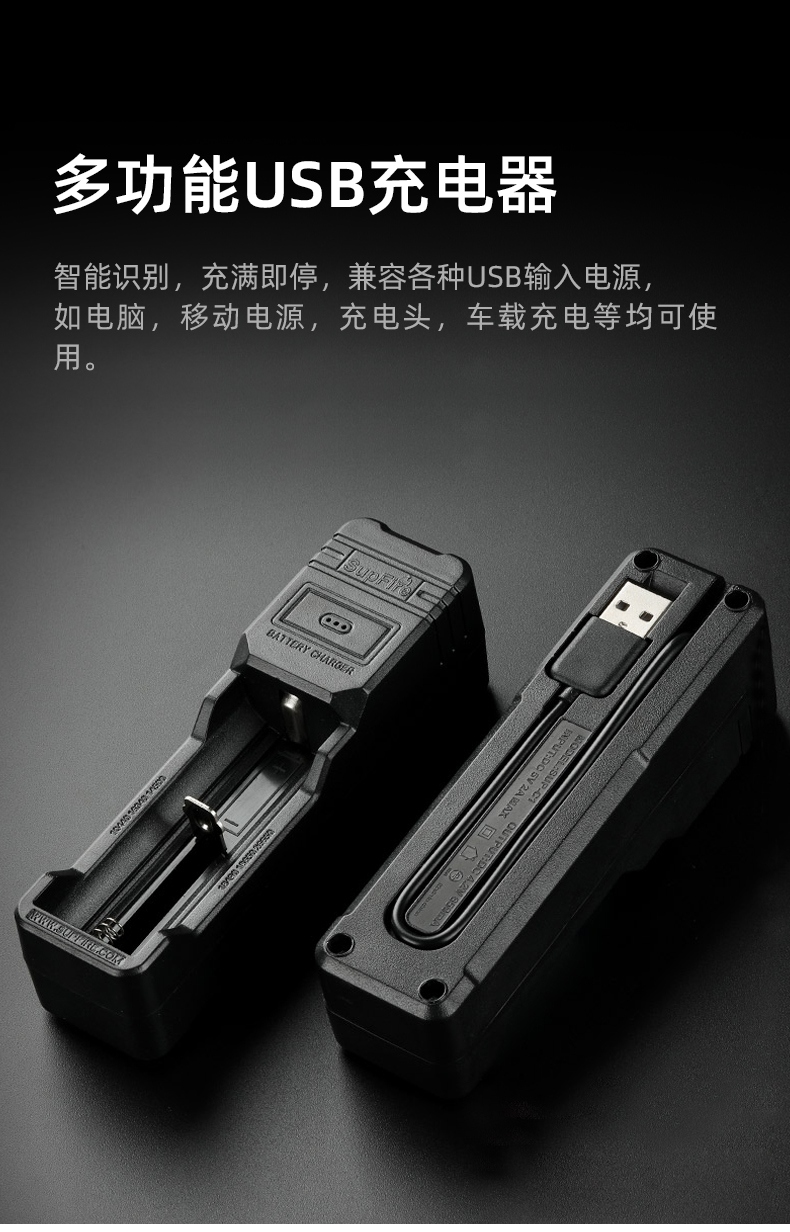 1.单击左边开关开启感应功能,同时开启强光档,续按关闭感应功能(关闭感应功能,光源不会关闭),当感应功能开启时,单击右边开关可正常调节档位。 2.多样化充电,使用方便:设有Type-c充电口,可使用充电器、充电宝、电脑等设备为灯具充电。 3.电量显示:实时
