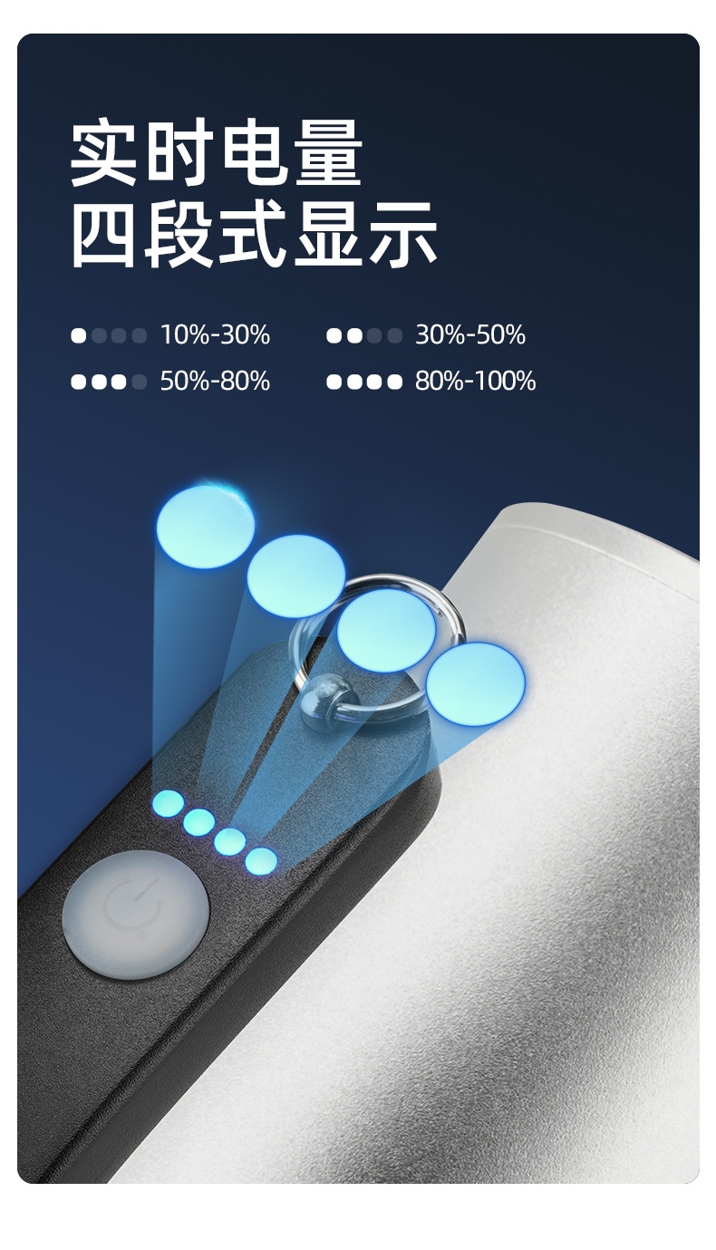 六大优势 点亮黑夜 高亮光源 持久续航 三档调光 分段电显 更多应用