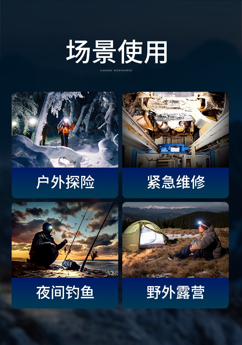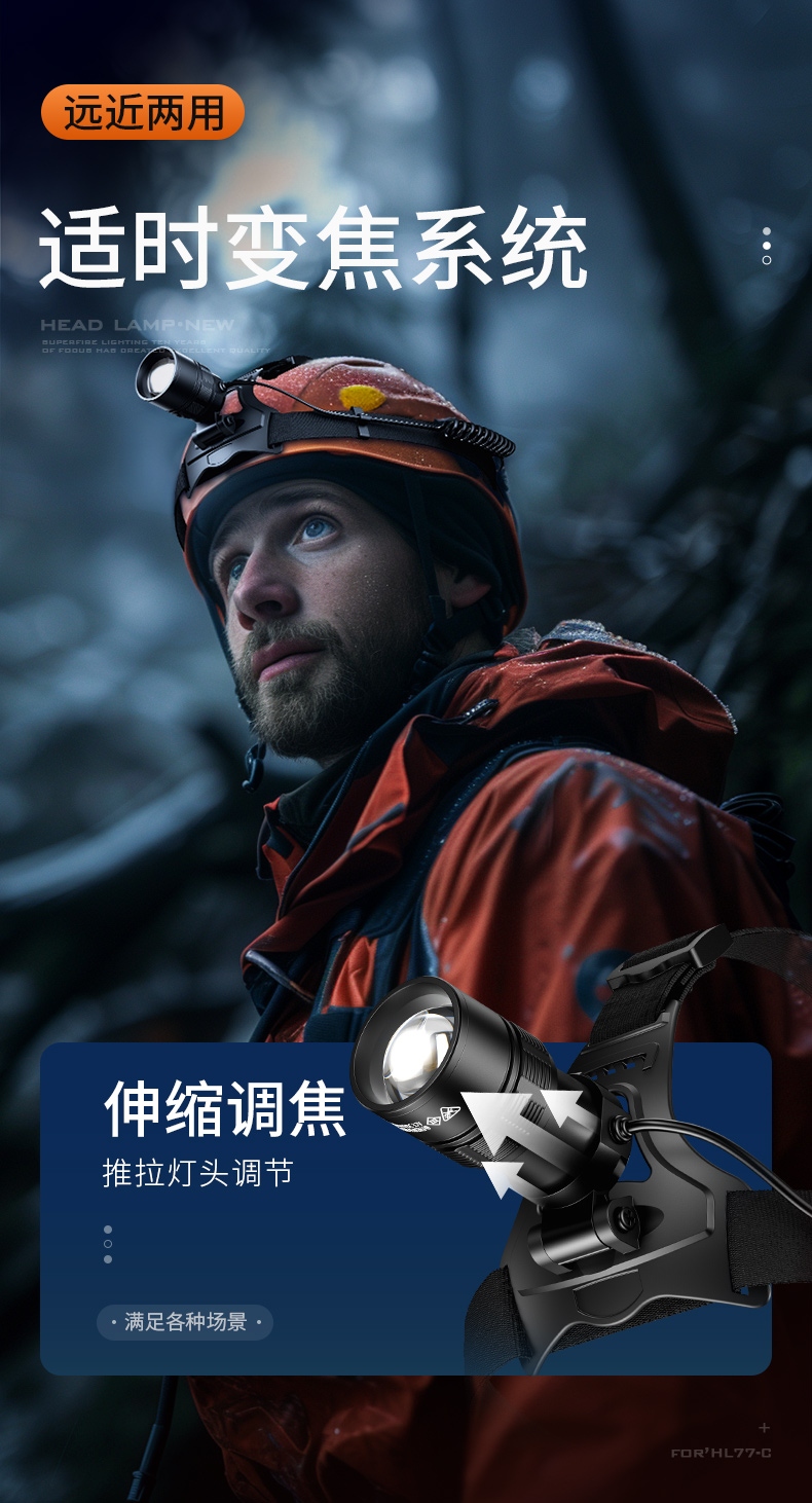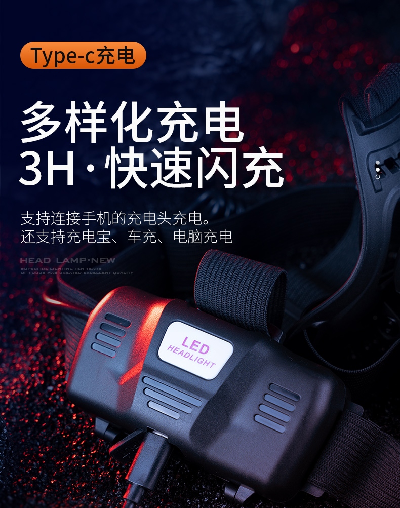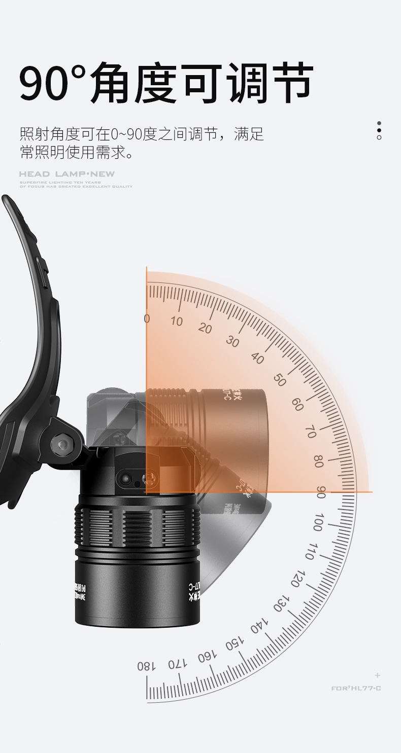 5.头灯角度调节:超90°角度随意调节,适宜各环境使用。