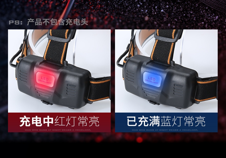 3.充电时红色指示灯常亮,充满时蓝色指示灯常亮。
