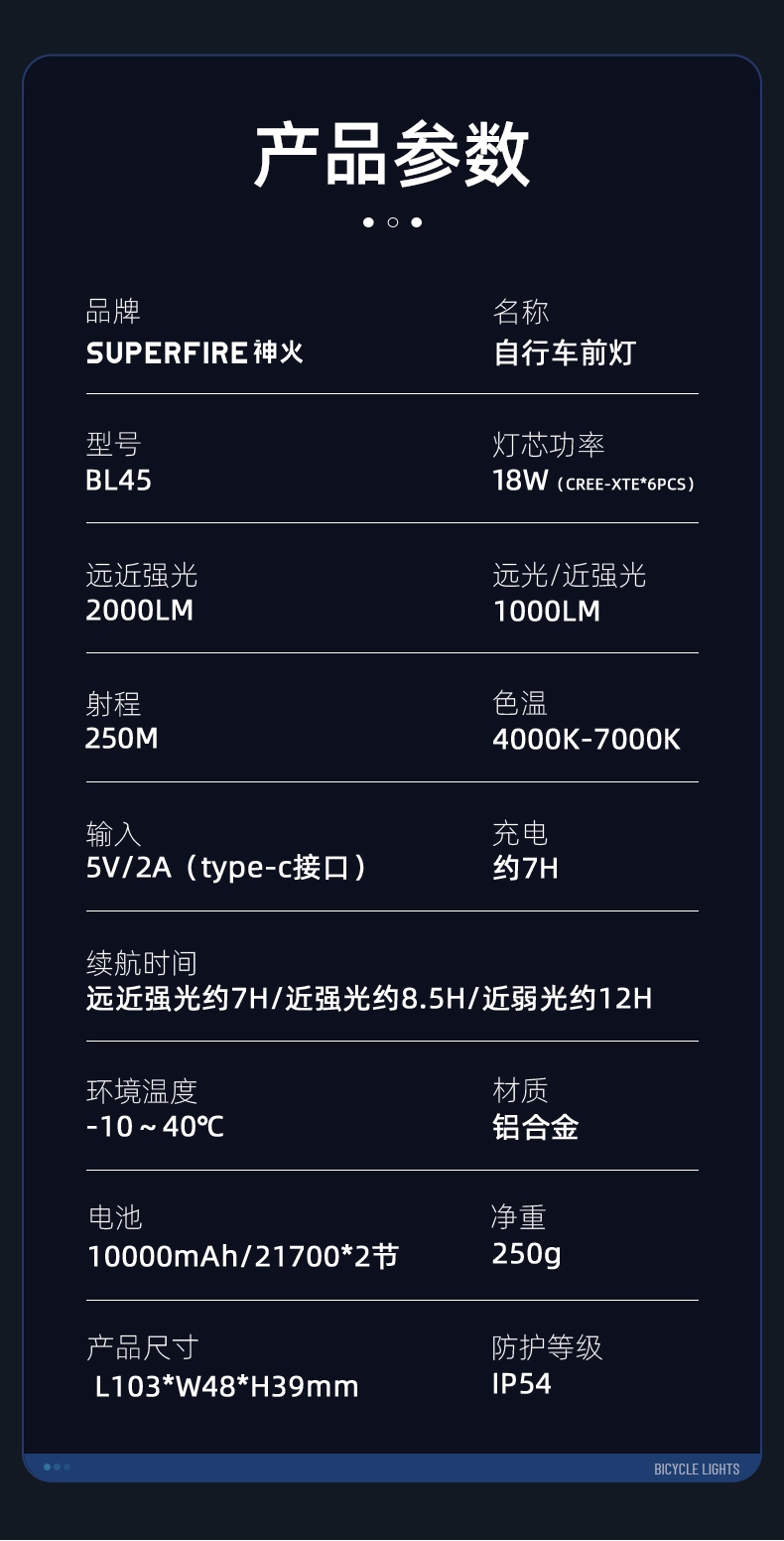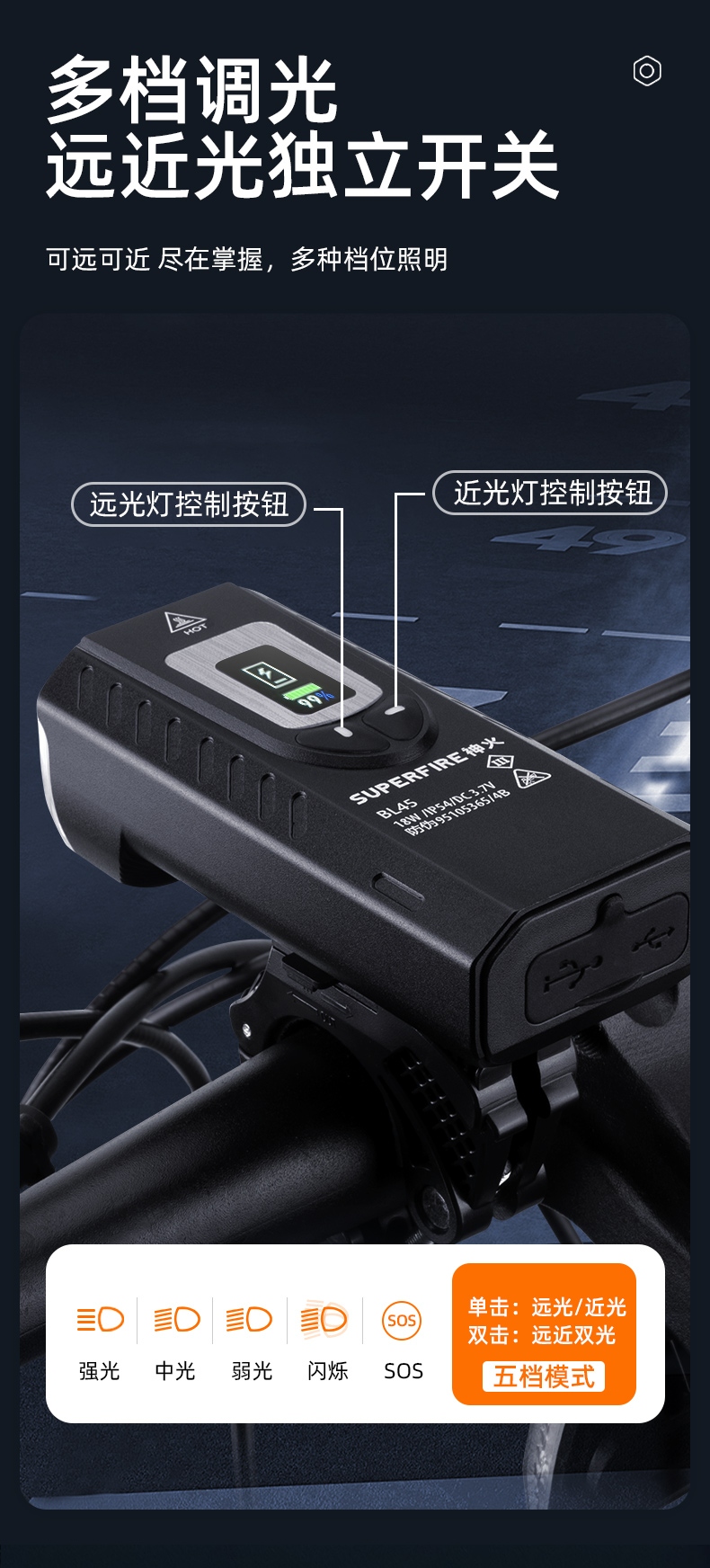 1、千米远射,射程更远,光斑更聚焦。 2、进口灯珠,亮度高,照明效果更好。 3、前后双按键,光源一键点亮,高亮瞬间开启。