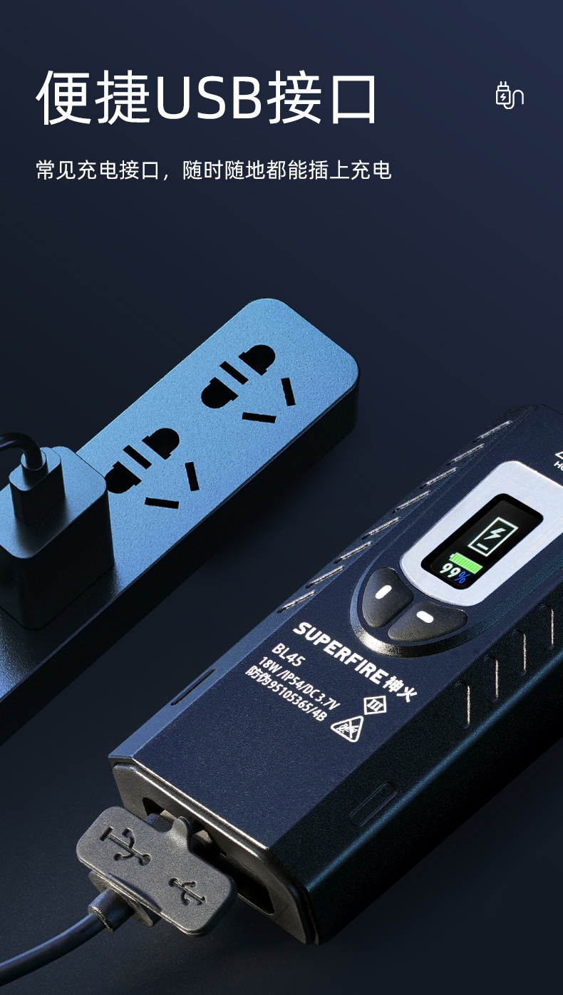 四档调光 Type-C充电 电量显示 铝合金筒身 持久续航 强力防水