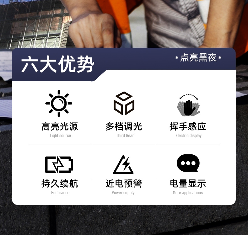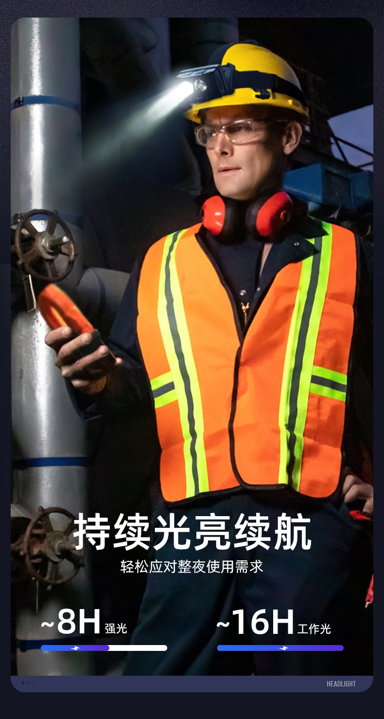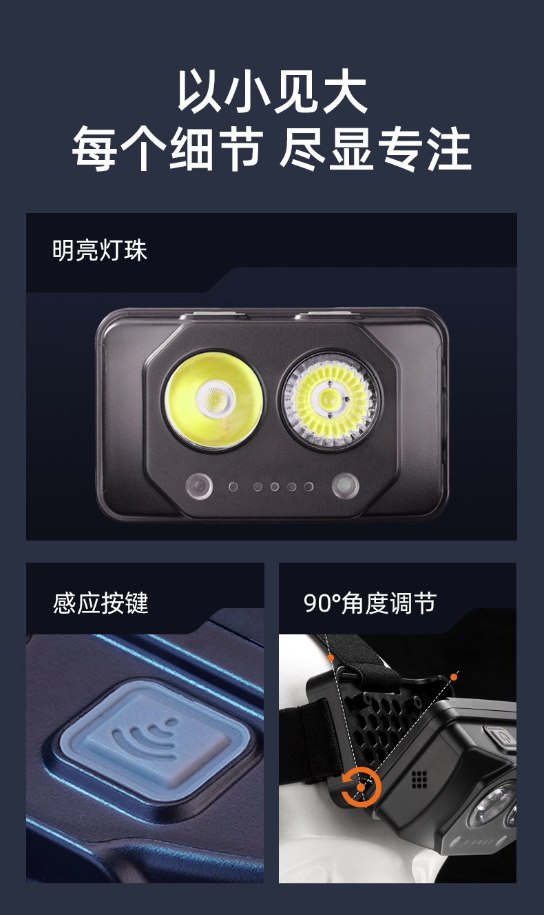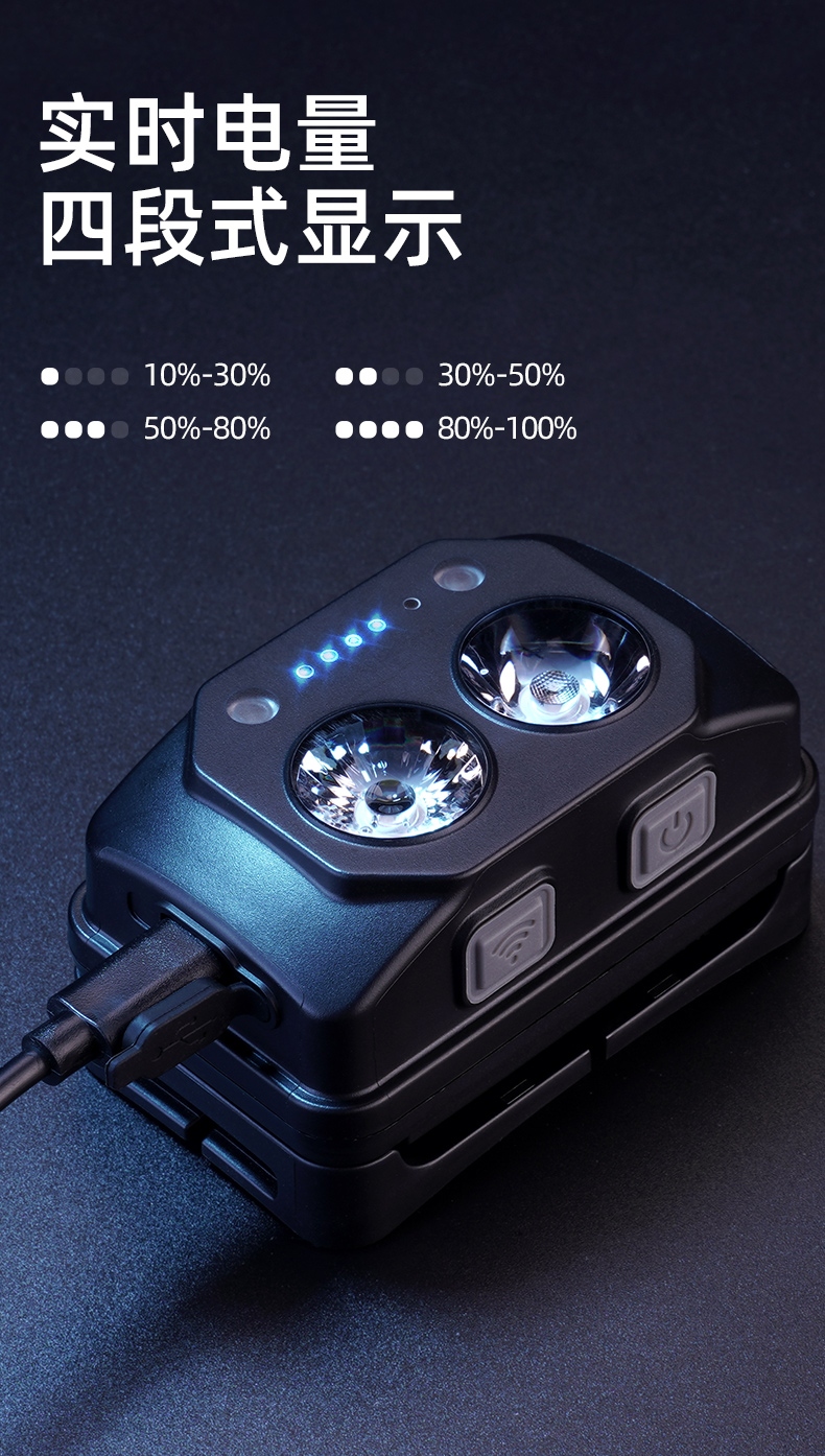 轻按光源开关点亮强聚光,再按点亮泛光;双击开关开启工作聚光;长按3-5秒钟开启超强聚光