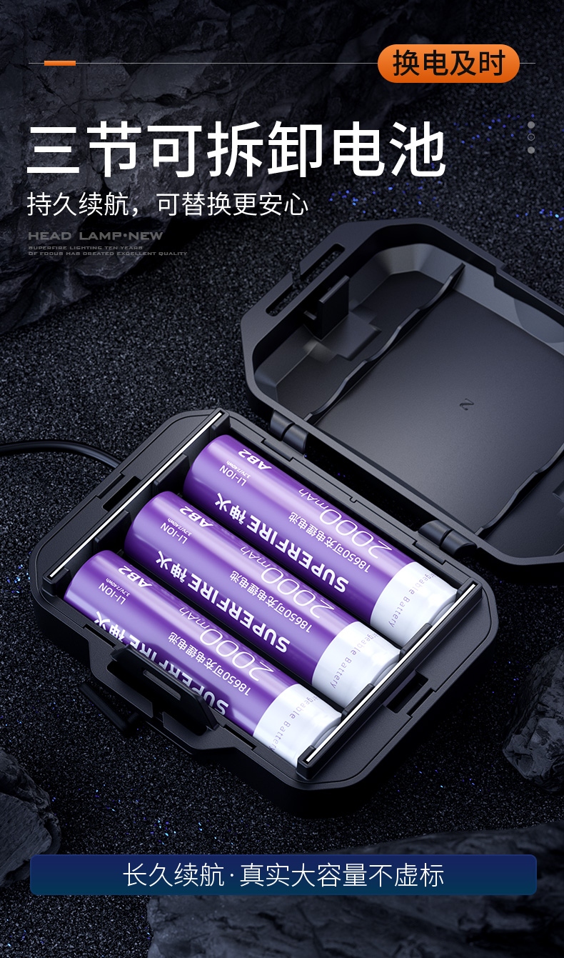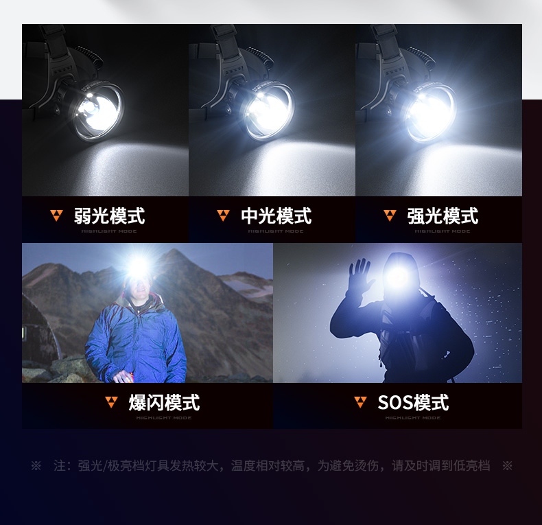 1、五档一体:弱中强、爆闪、SOS自由切换,可满足不同场景下的使用需求 。