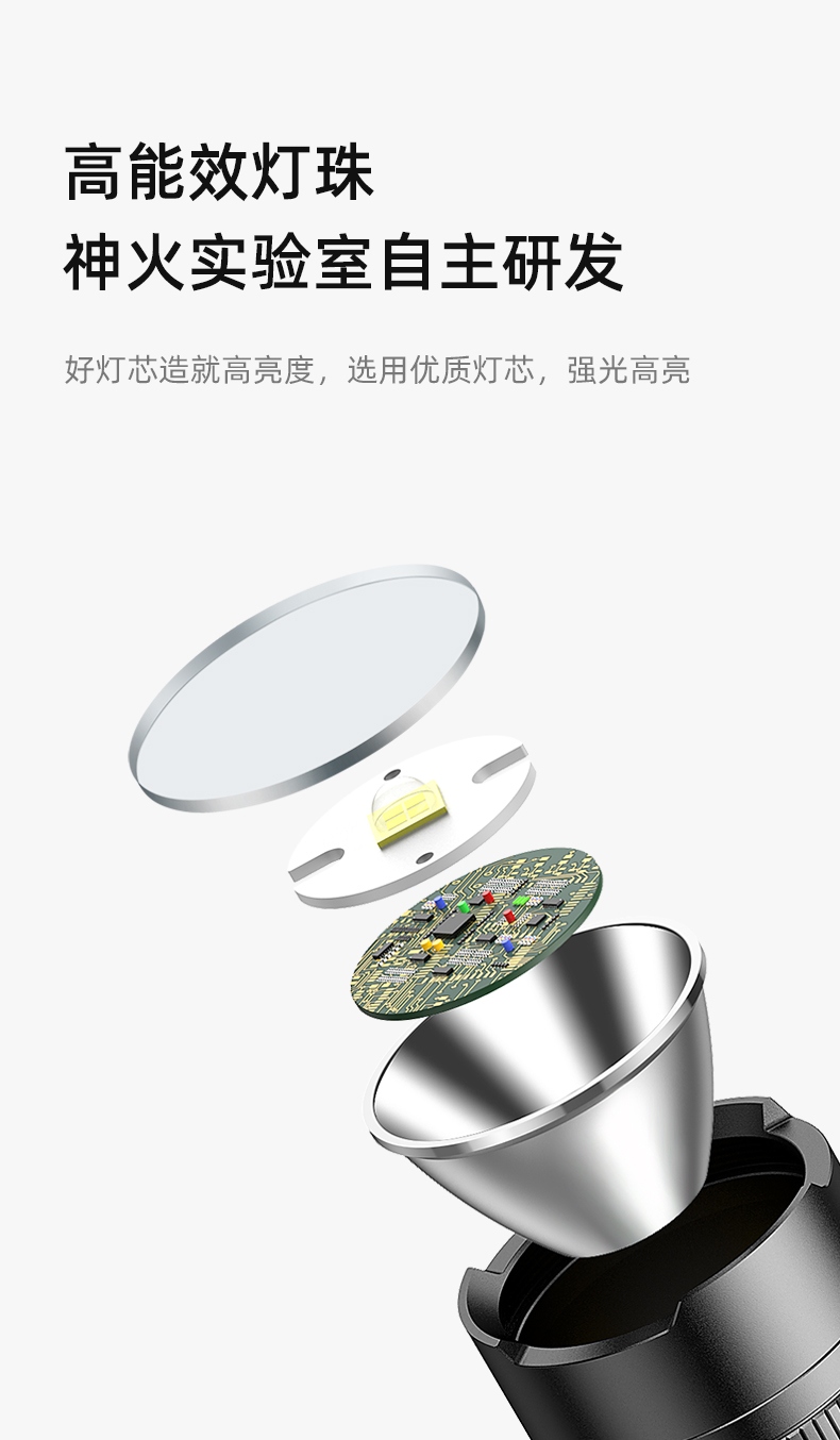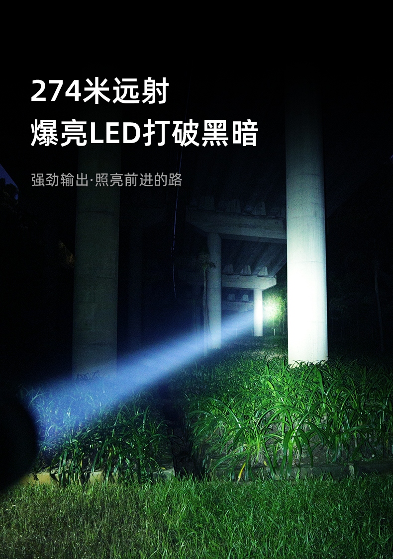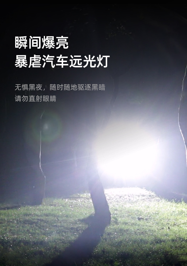 1、千米远射,射程更远,光斑更聚焦。 2、进口灯珠,亮度高,照明效果更好。 3、前后双按键,光源一键点亮,高亮瞬间开启。
