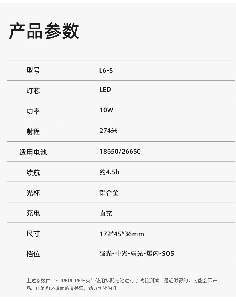 L6姐妹款,26650电池高续航,中置开关大功率手电