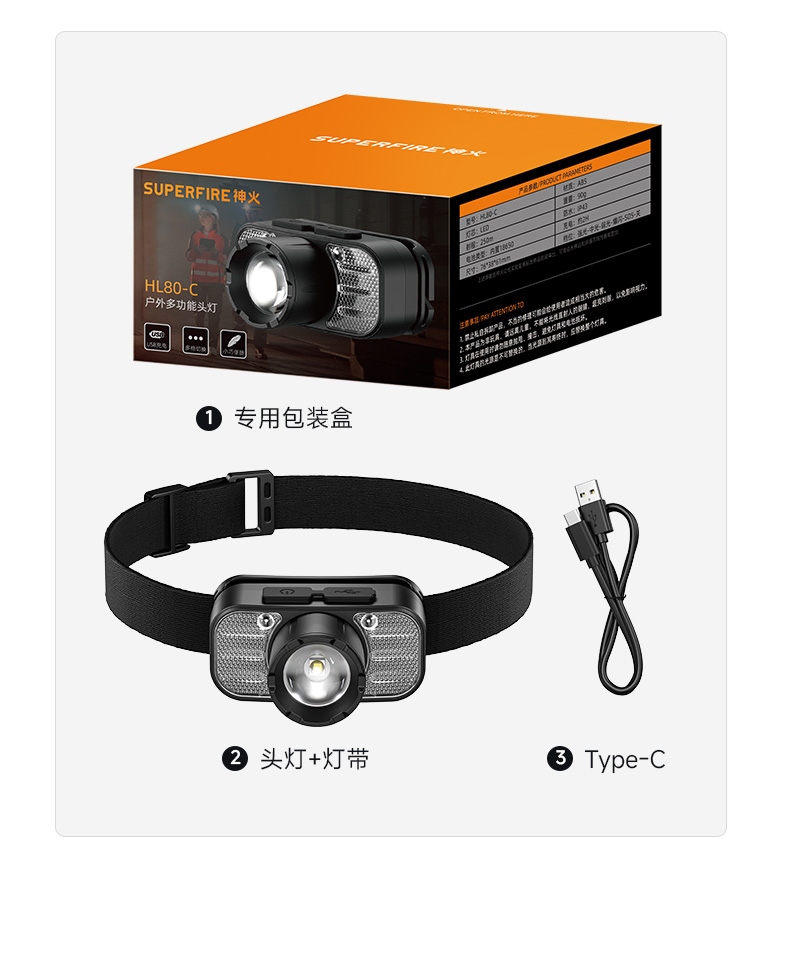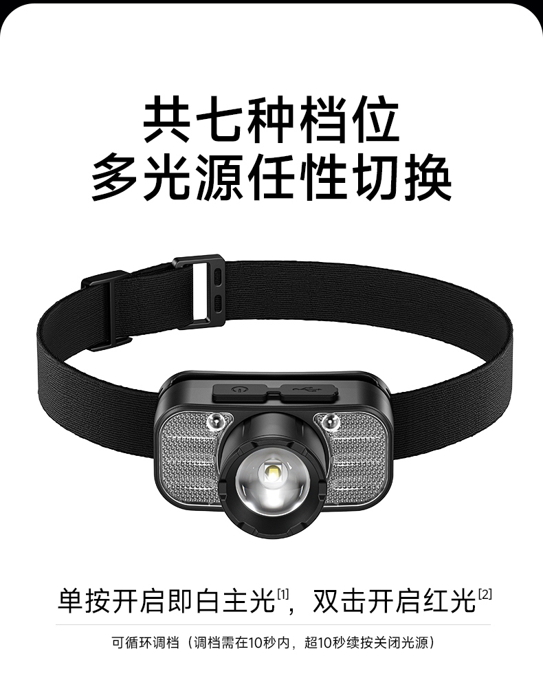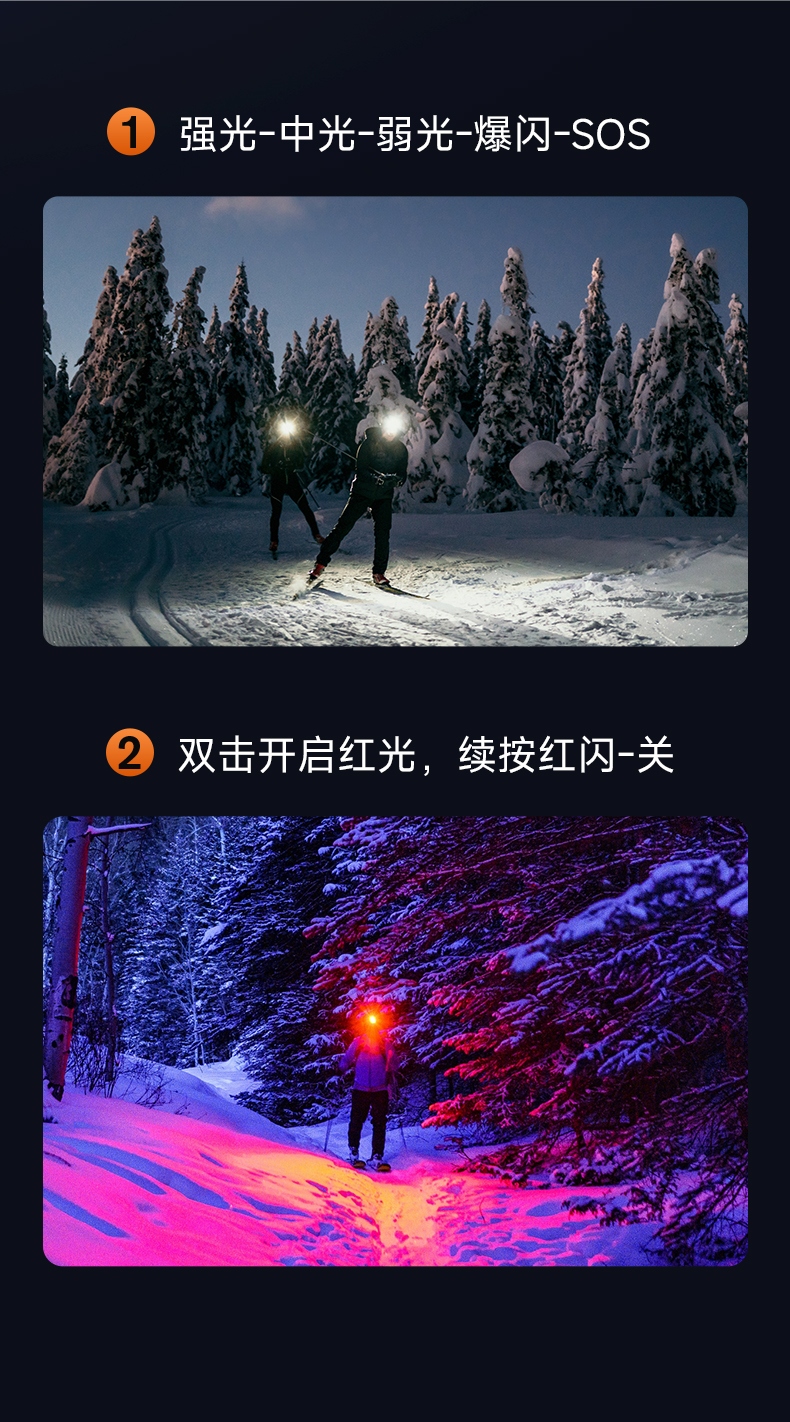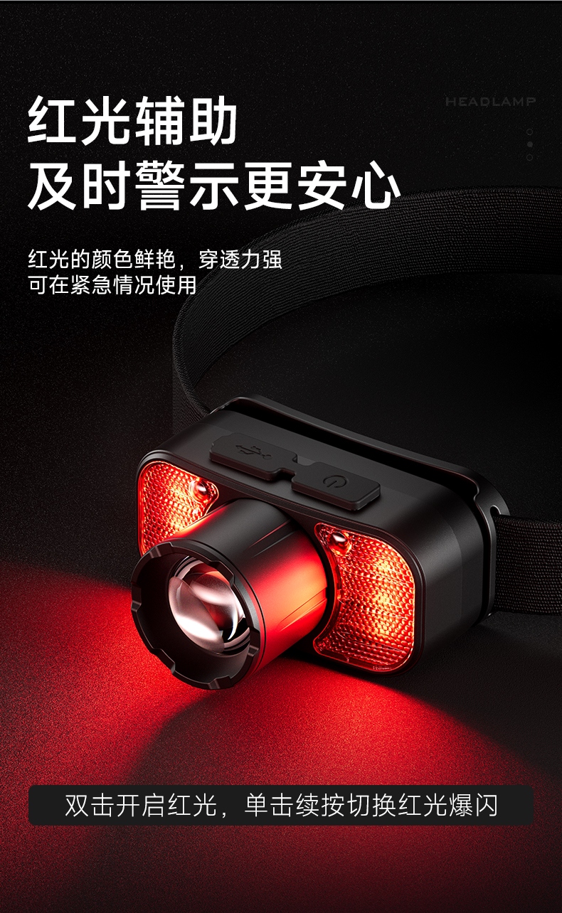 2.此款头灯带有红常亮-红光爆闪,可作警示作用。