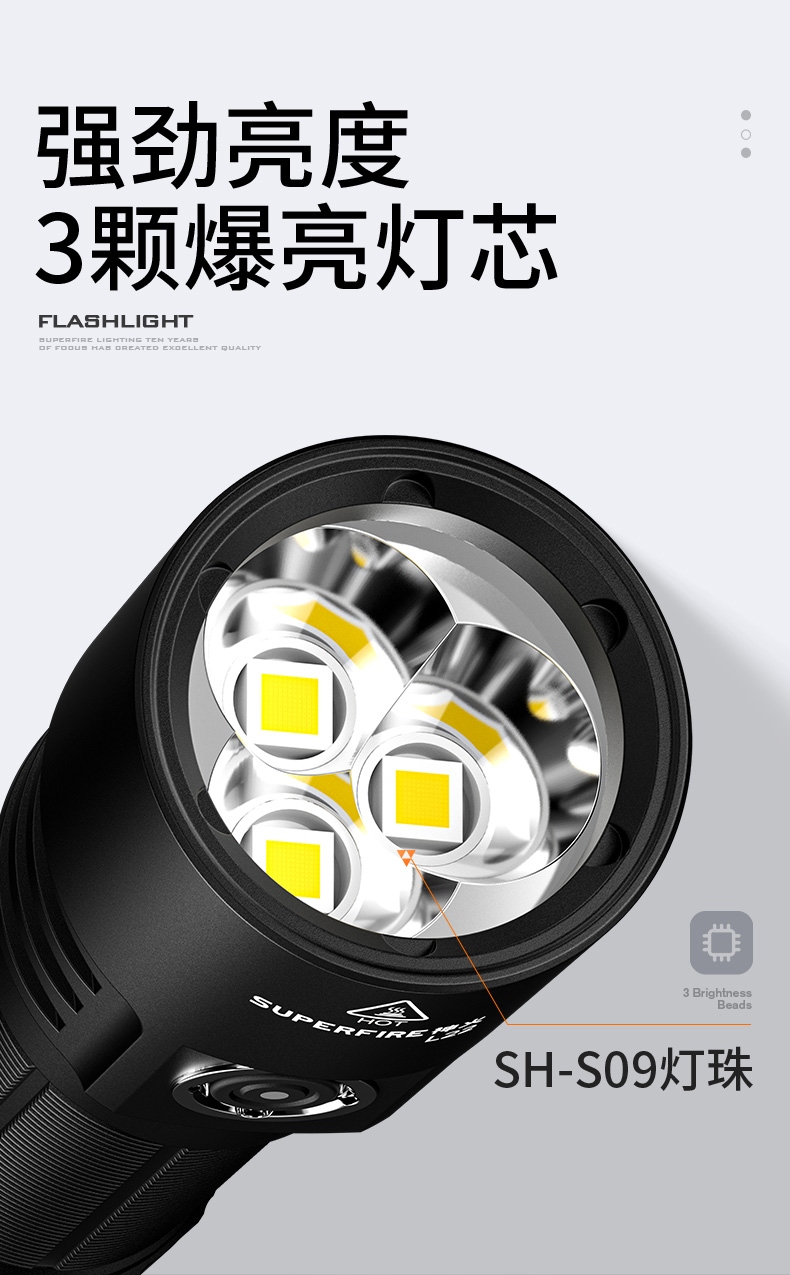 5、3颗高亮灯珠,亮度高,照明效果更好。