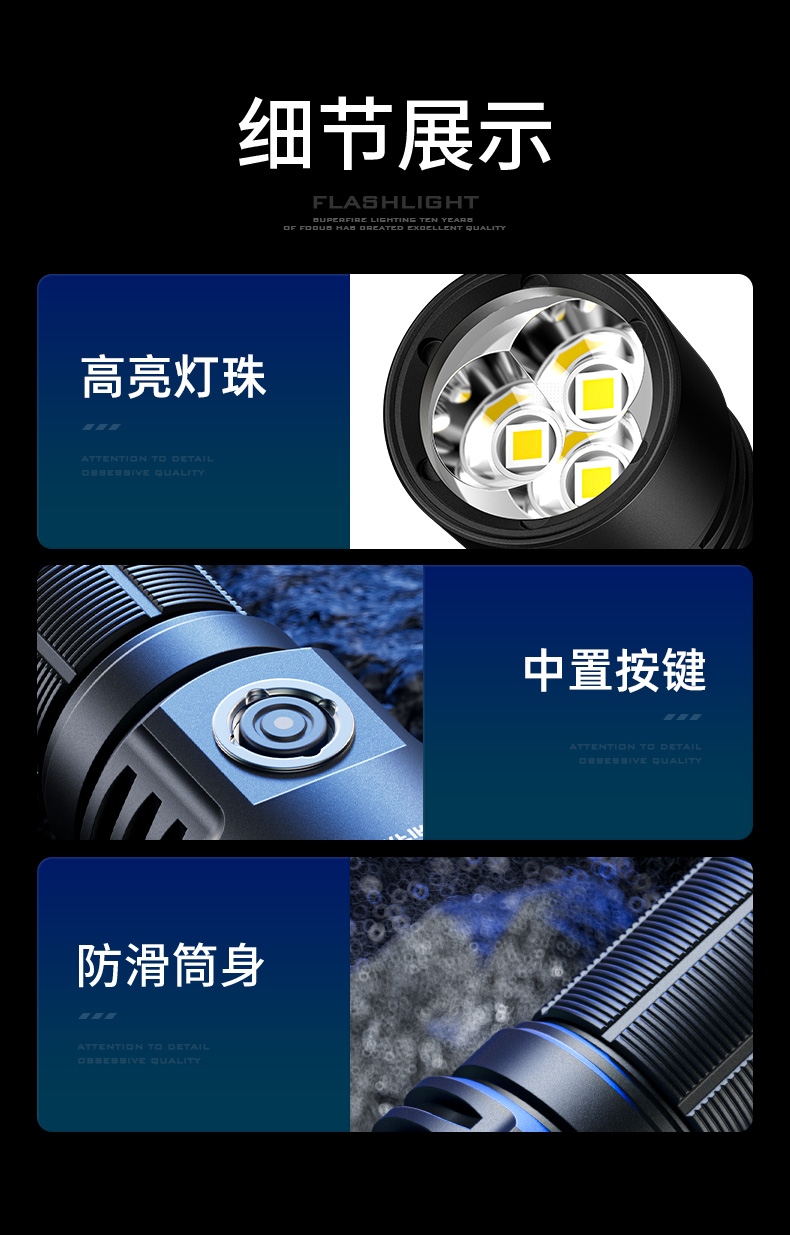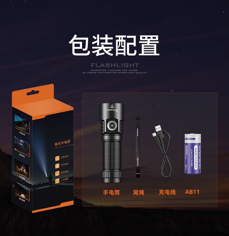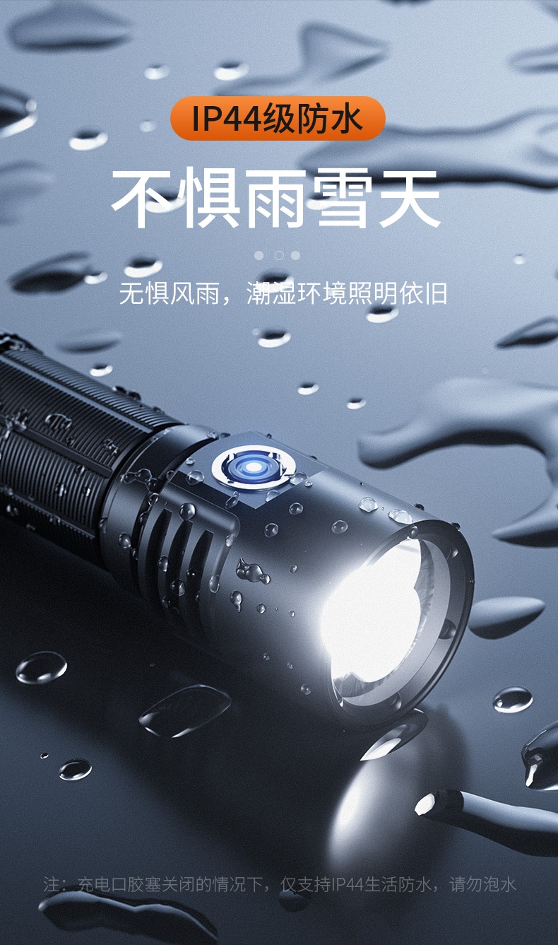四档调光 Type-C充电 电量显示 铝合金筒身 持久续航 强力防水