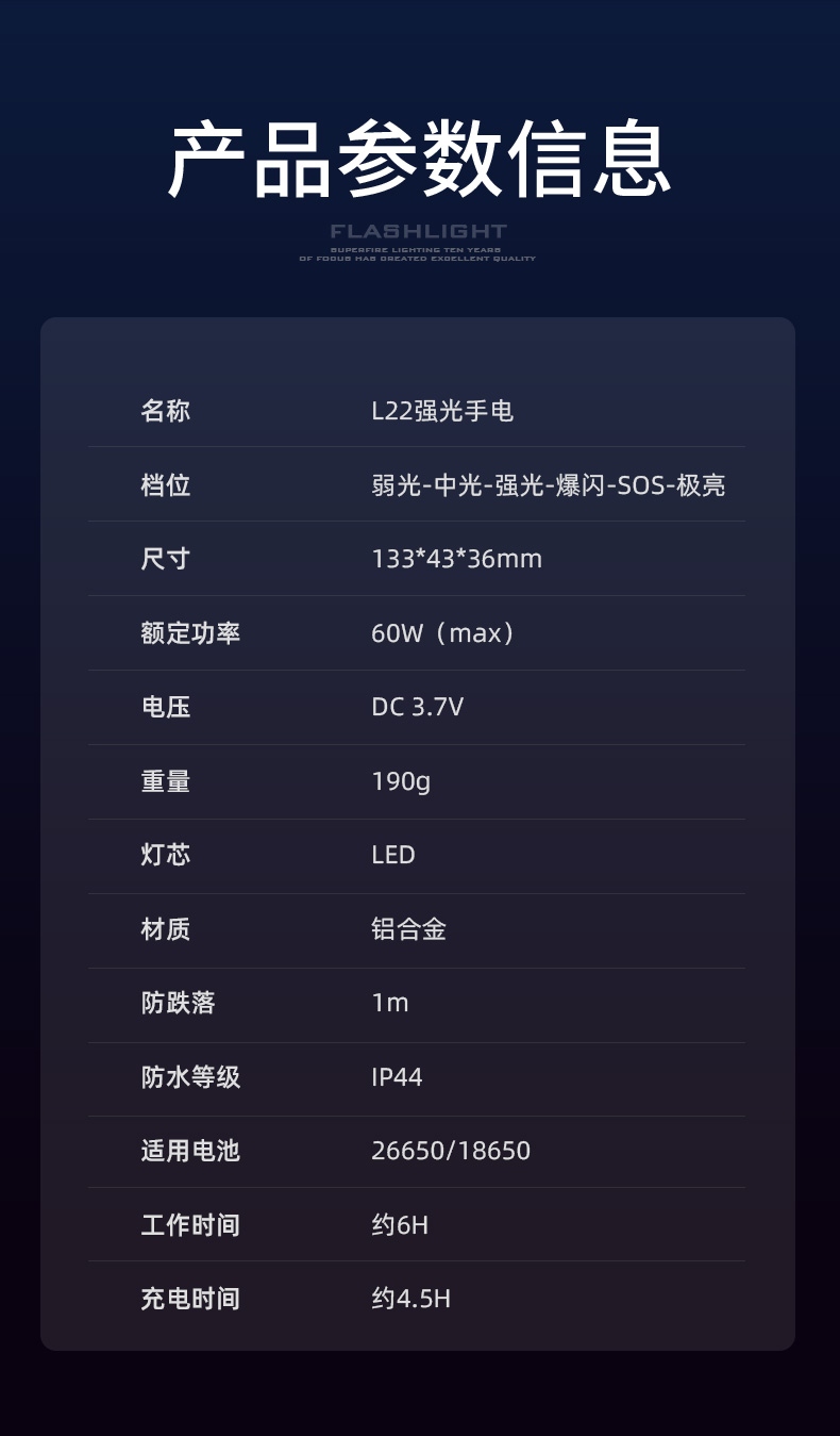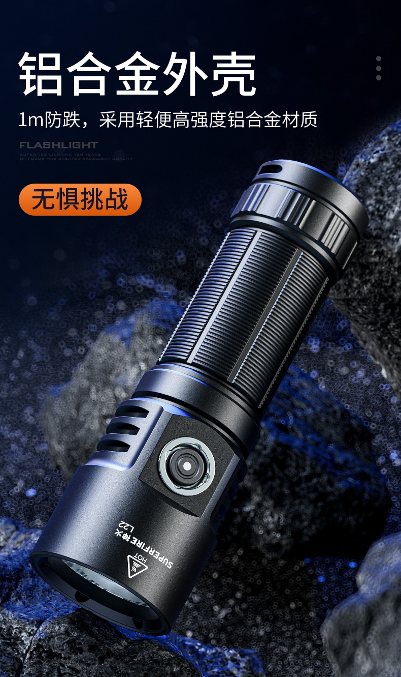 6、铝合金筒身,防水耐摔。