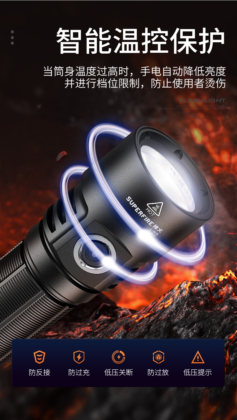 2、多种安全程序,可有效保护手电使用安全,延长手电使用寿命。