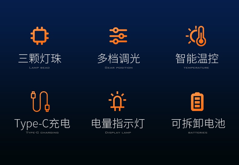 1、六档调光,可满足不同使用场景下的照明需求。 2、进口高亮朗明纳斯灯珠,照明效果更好。 3、含档位记忆,任意档位快捷关机 ,开机恢复关机前档位。