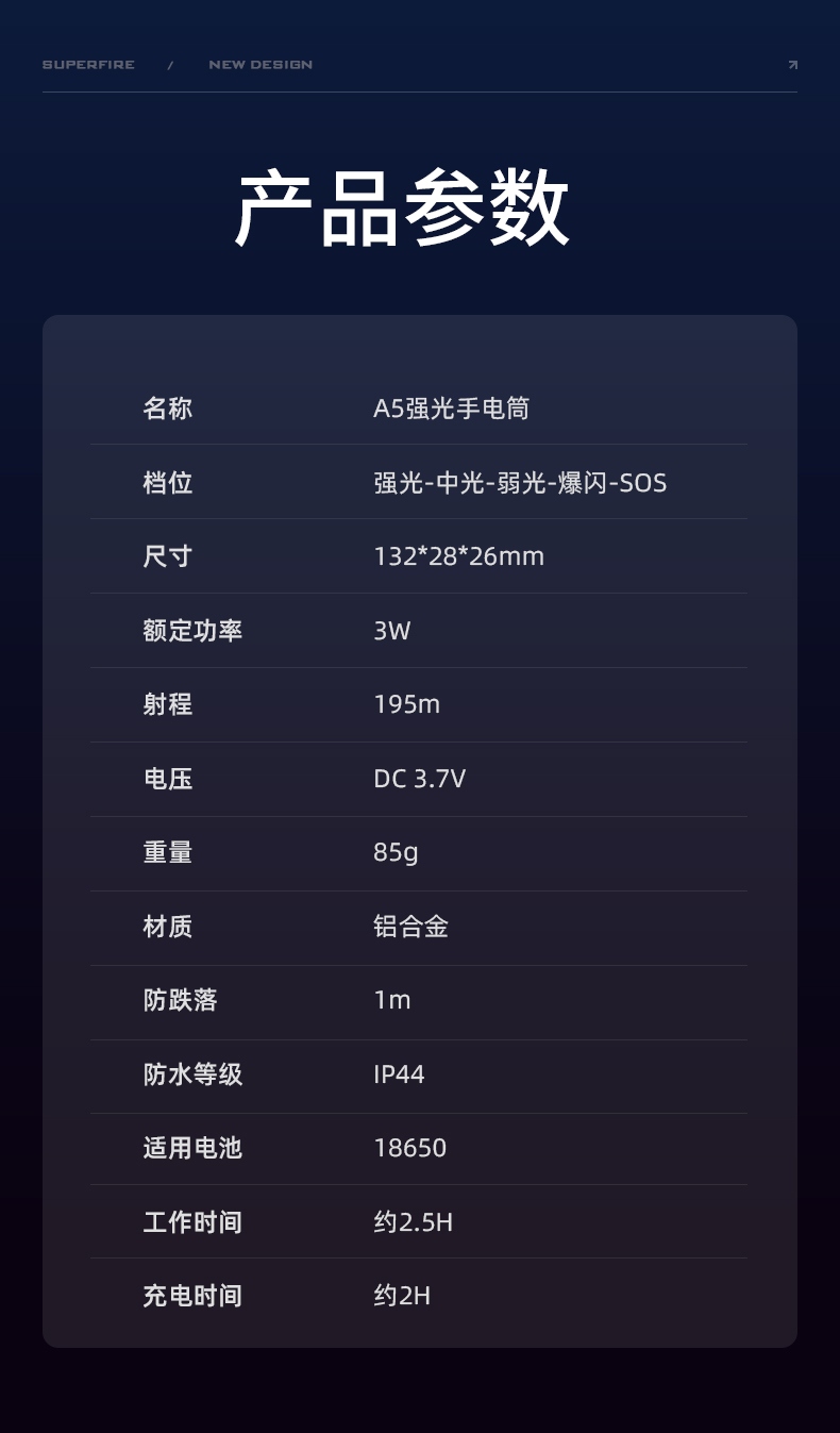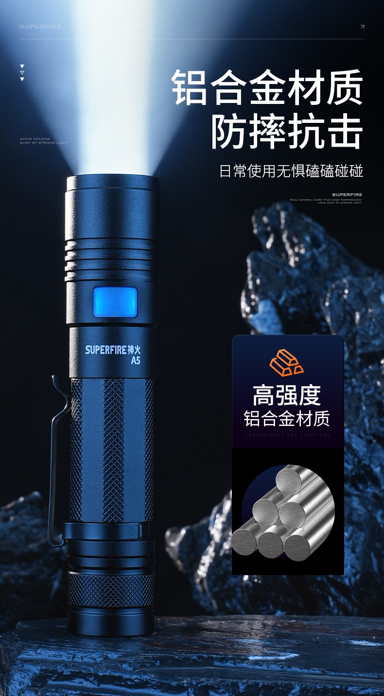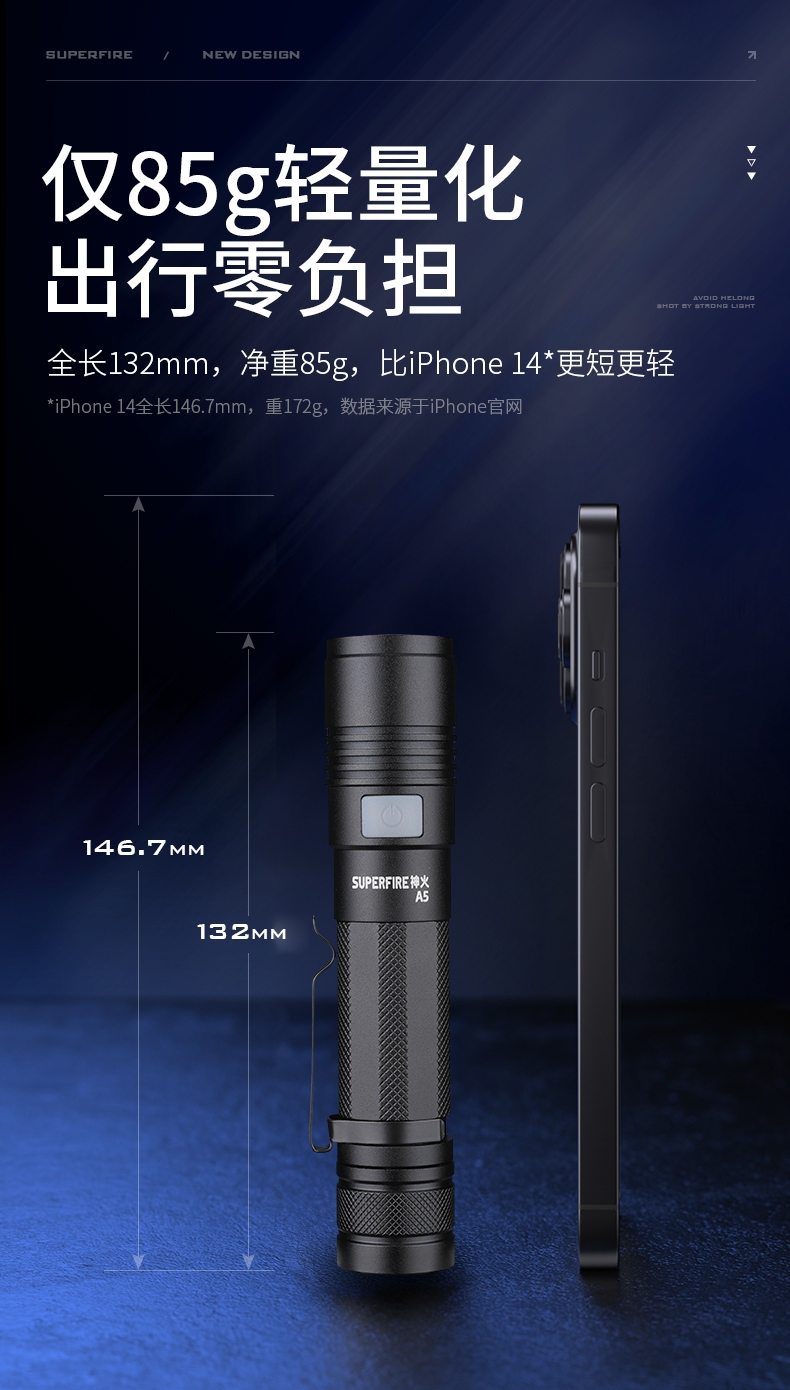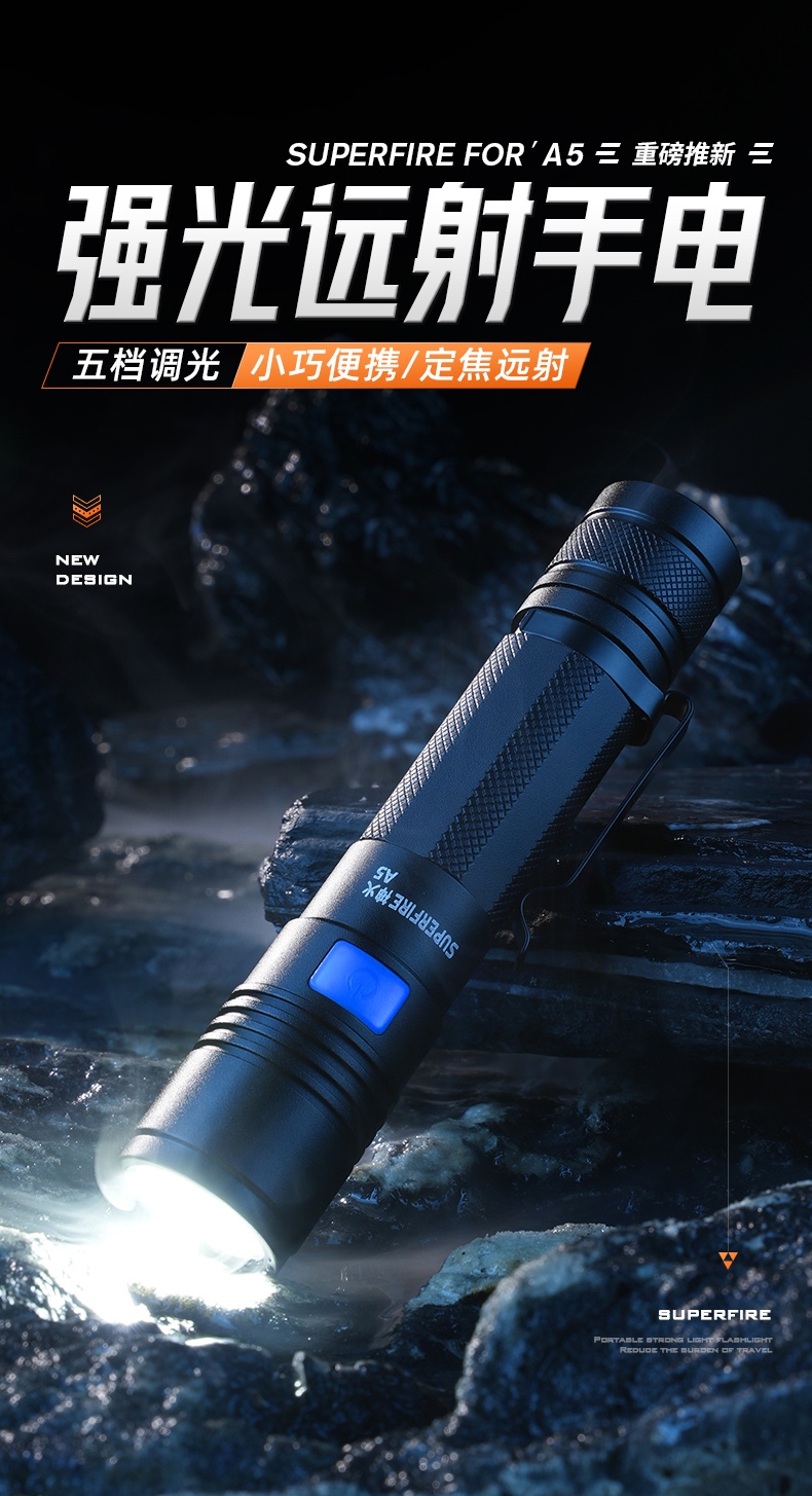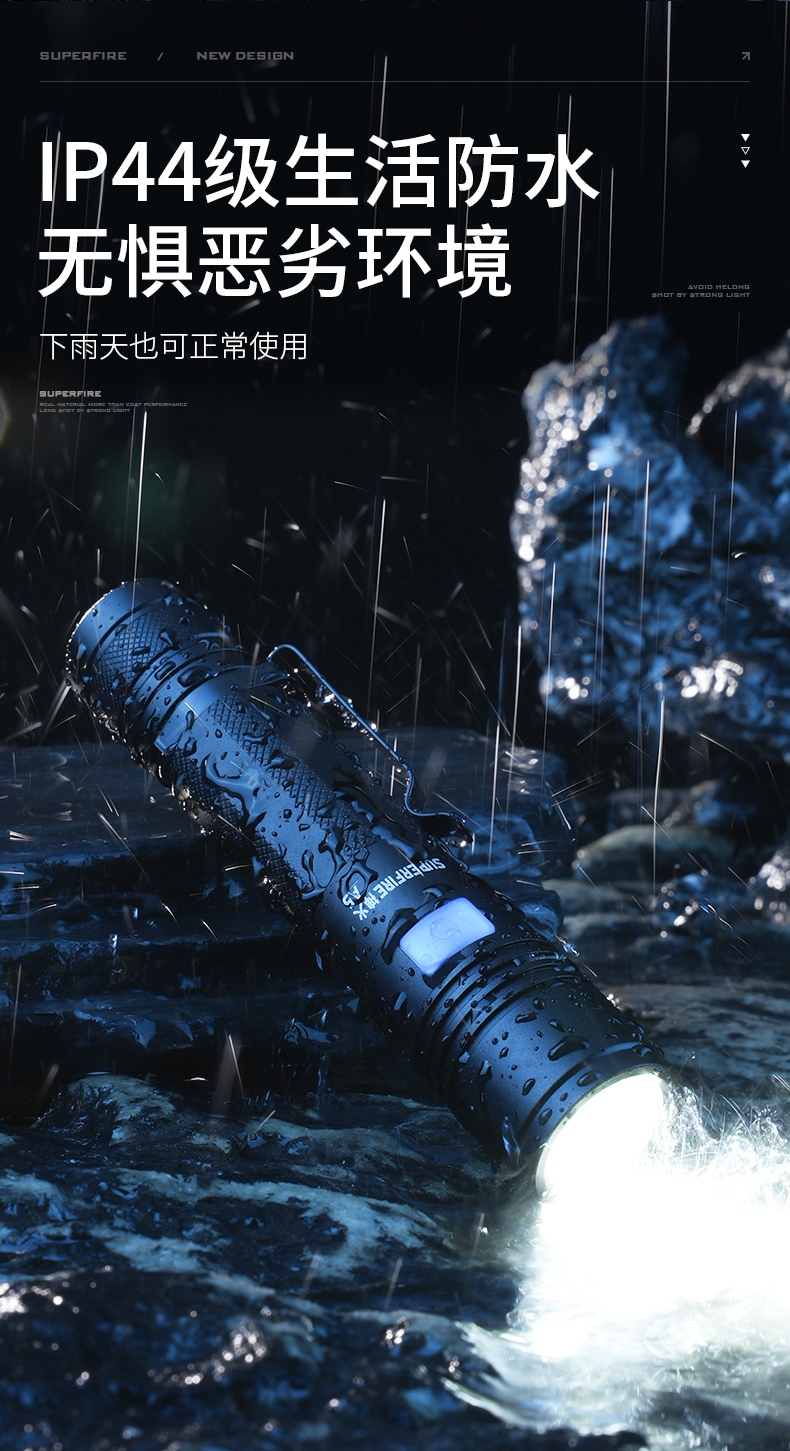 1、多档调光,可满足不同使用场景下的照明需求。 2、多种安全程序,可有效保护手电使用安全,延长手电使用寿命。 3、精致外观,时尚小巧。