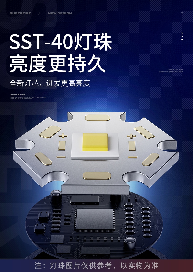5、SST40高亮灯珠,亮度高,照明效果更好。