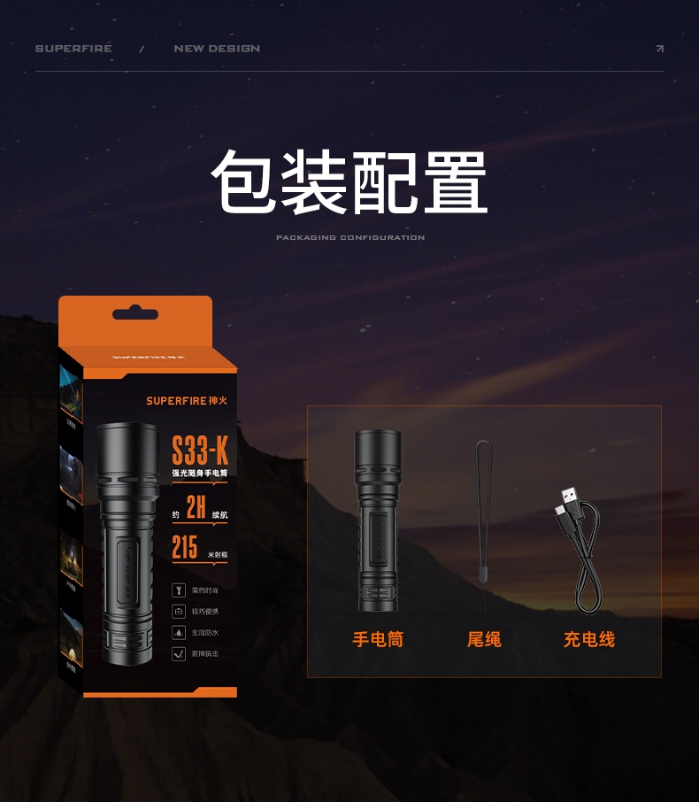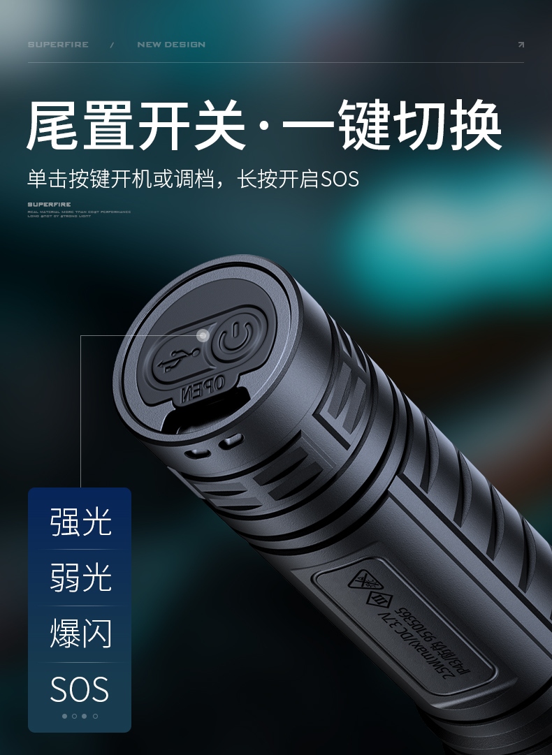 四档调光 Type-C充电 电量显示 铝合金筒身 持久续航 强力防水