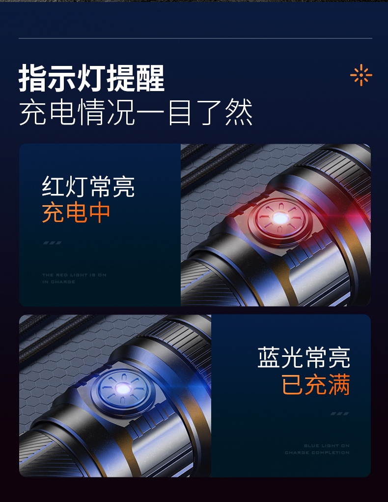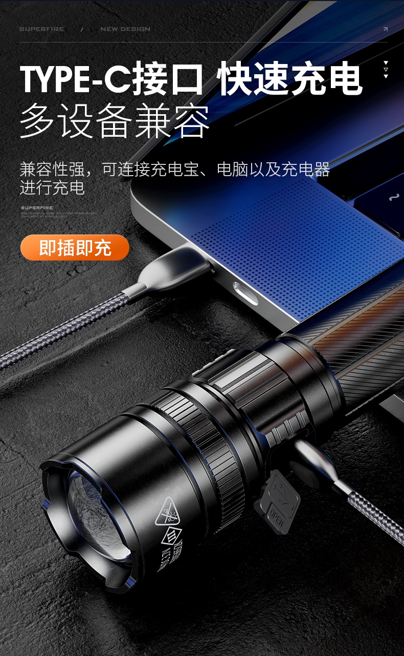 四档调光 Type-C充电 电量显示 铝合金筒身 持久续航 强力防水