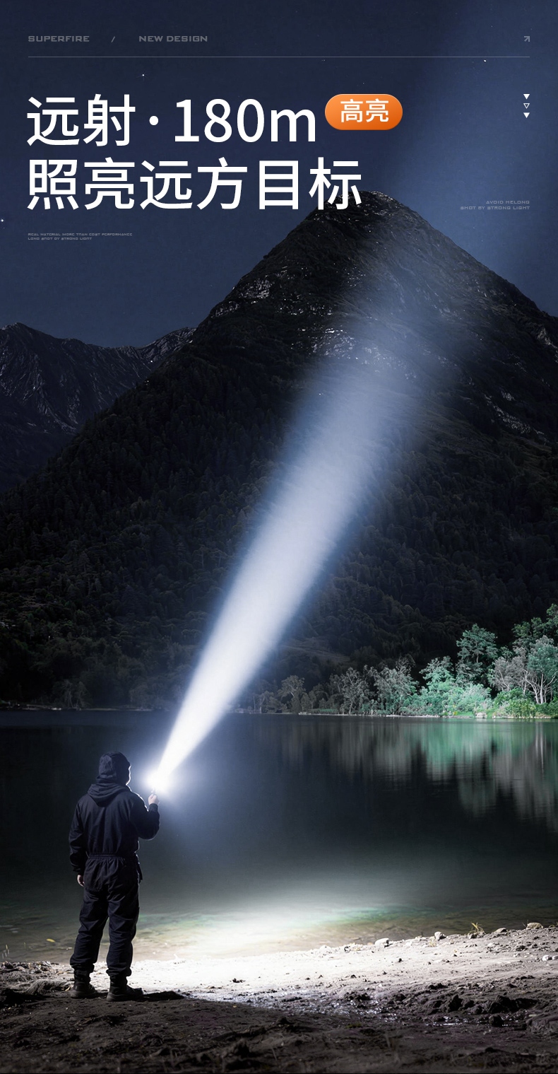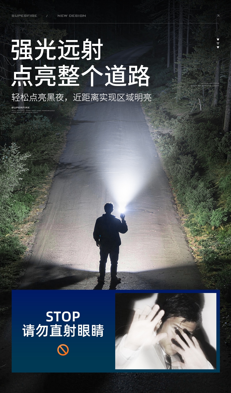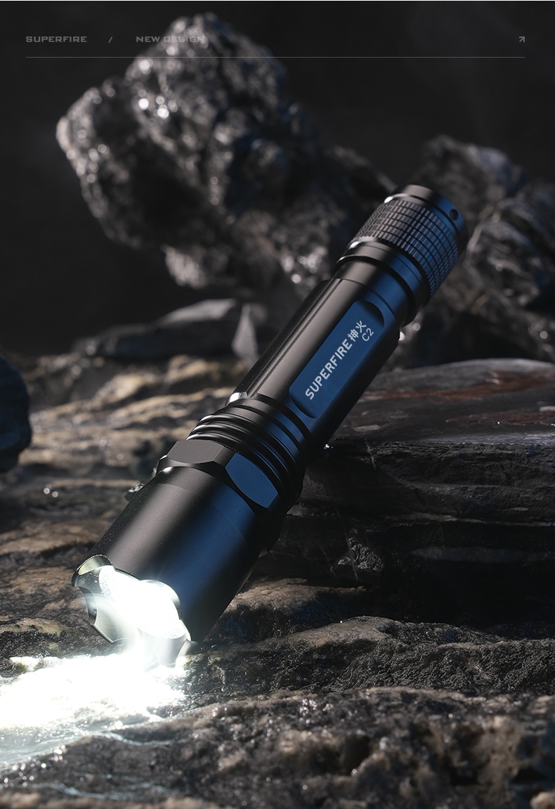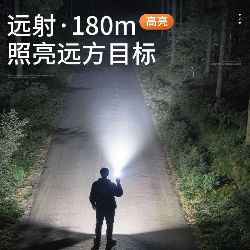 1、千米远射,射程更远,光斑更聚焦。 2、进口灯珠,亮度高,照明效果更好。 3、前后双按键,光源一键点亮,高亮瞬间开启。