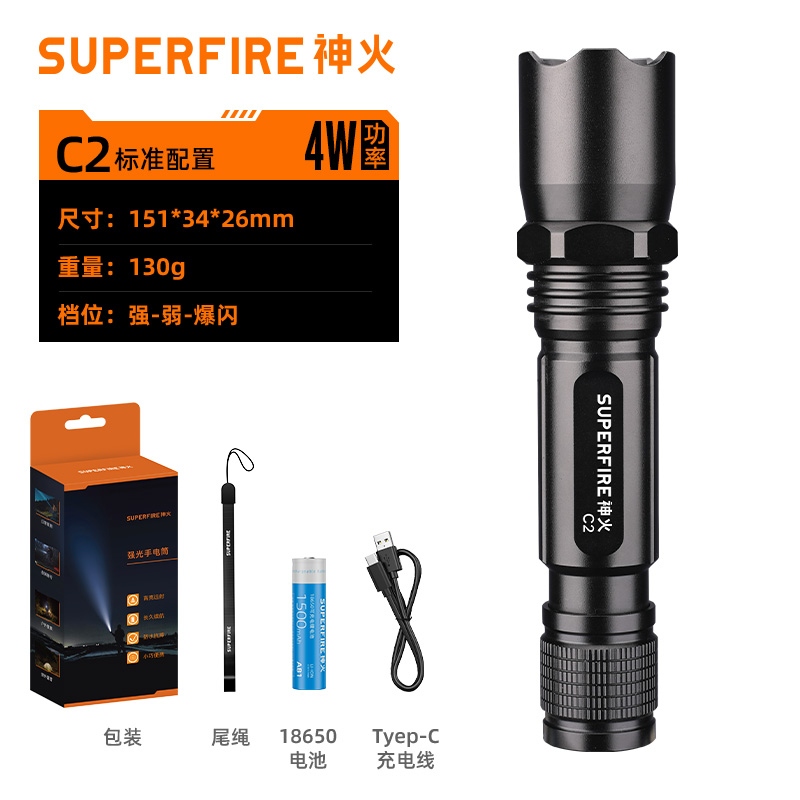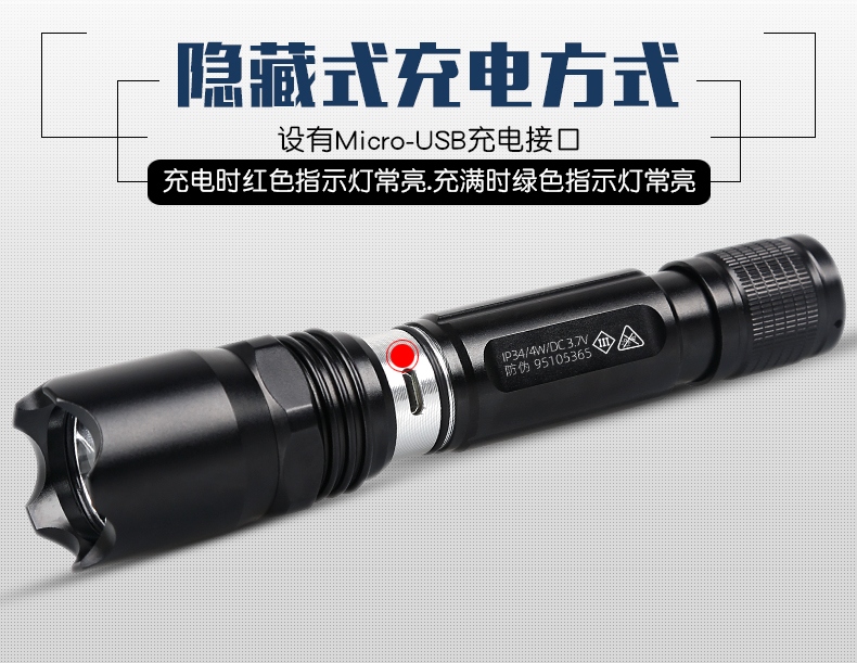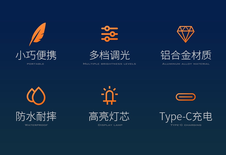 四档调光 Type-C充电 电量显示 铝合金筒身 持久续航 强力防水
