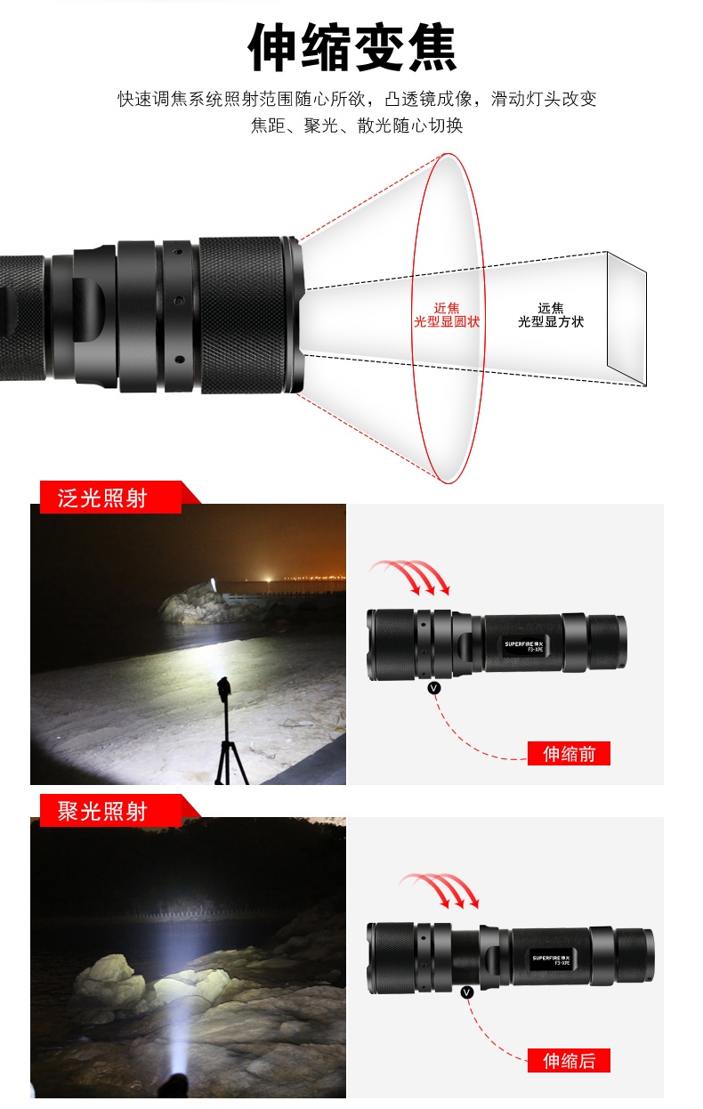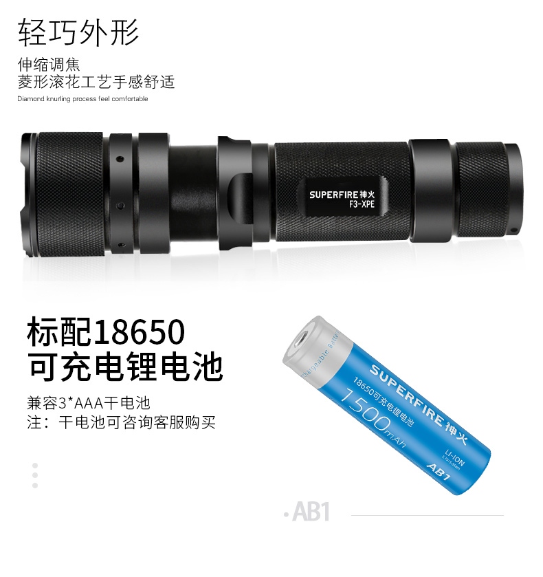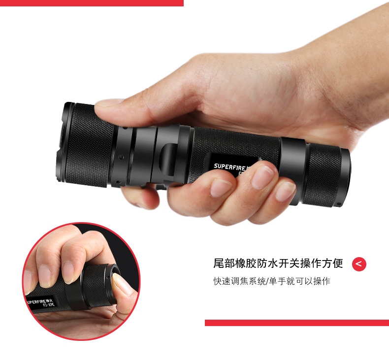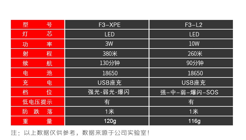 1、千米远射,射程更远,光斑更聚焦。 2、进口灯珠,亮度高,照明效果更好。 3、前后双按键,光源一键点亮,高亮瞬间开启。