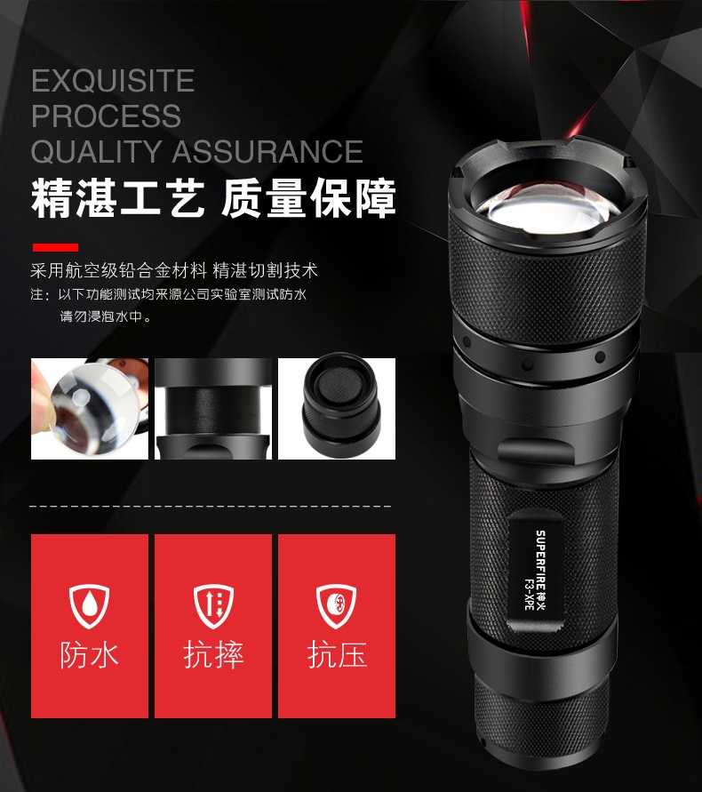 四档调光 Type-C充电 电量显示 铝合金筒身 持久续航 强力防水