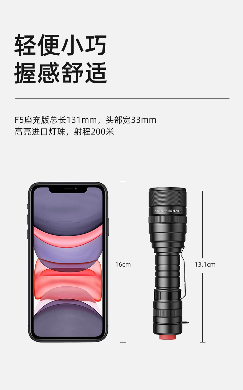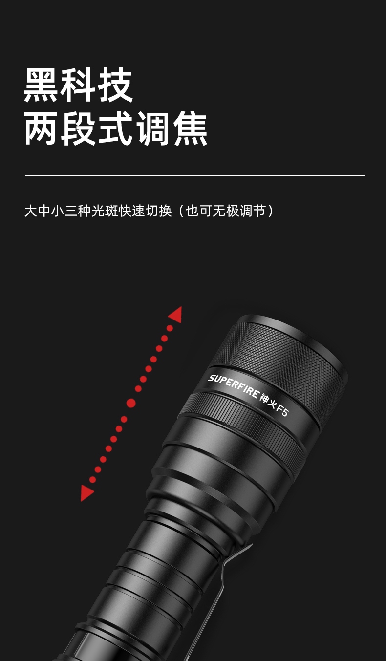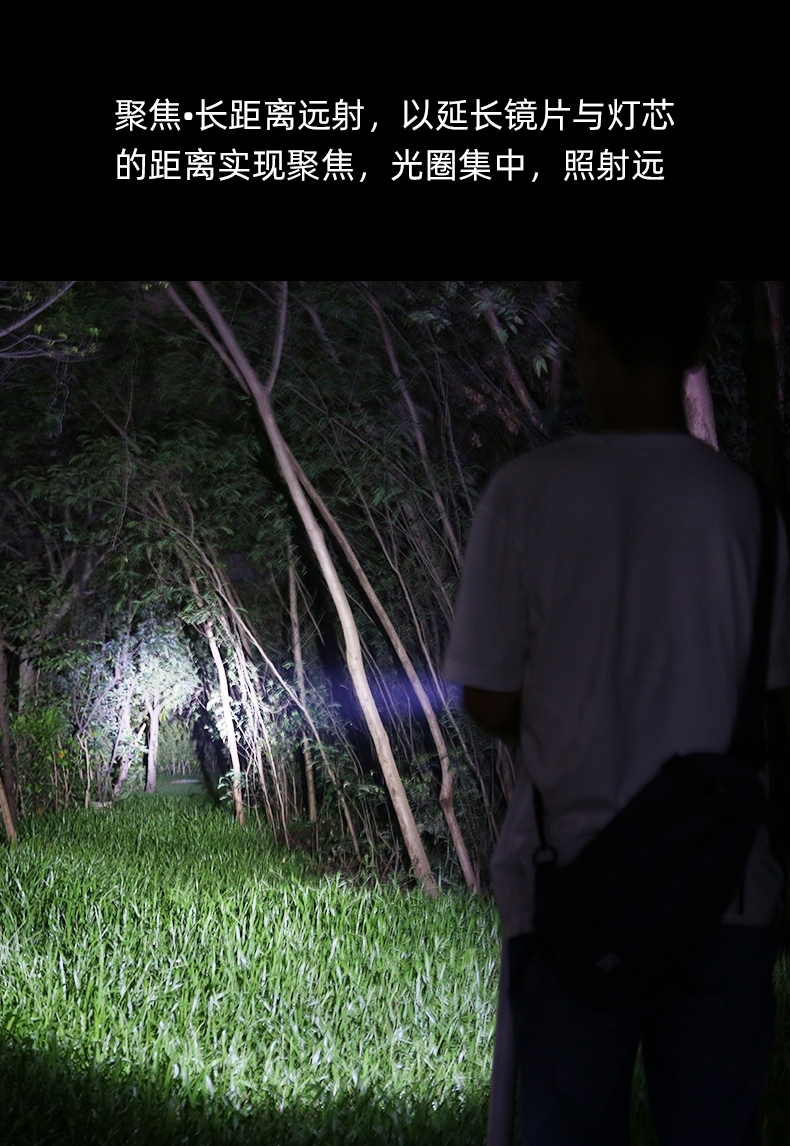 1、千米远射,射程更远,光斑更聚焦。 2、进口灯珠,亮度高,照明效果更好。 3、前后双按键,光源一键点亮,高亮瞬间开启。