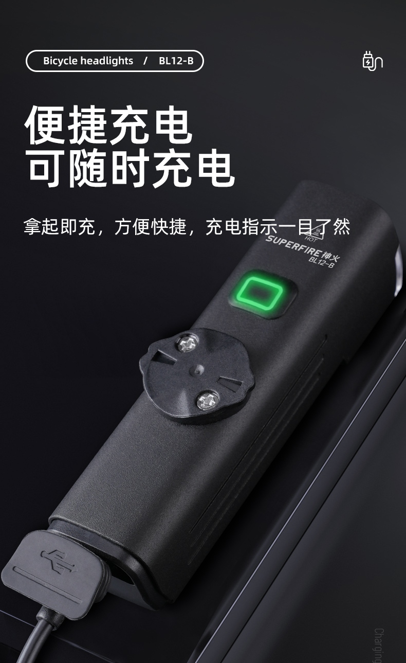 1.单击左边开关开启感应功能,同时开启强光档,续按关闭感应功能(关闭感应功能,光源不会关闭),当感应功能开启时,单击右边开关可正常调节档位。 2.多样化充电,使用方便:设有Type-c充电口,可使用充电器、充电宝、电脑等设备为灯具充电。 3.电量显示:实时