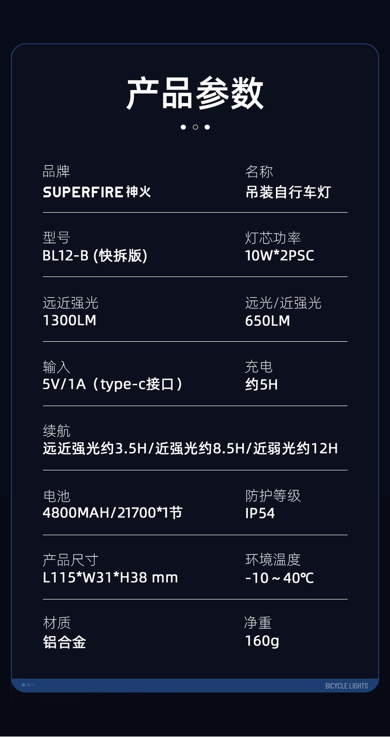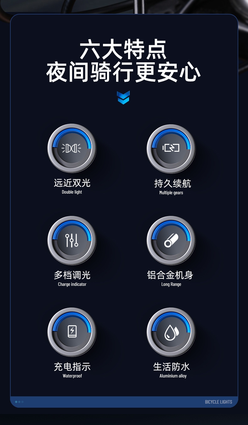 照亮前路外出更安全 吊装自行车灯 远近双光