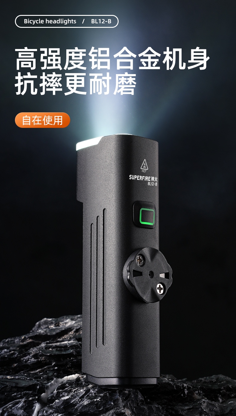 1、千米远射,射程更远,光斑更聚焦。 2、进口灯珠,亮度高,照明效果更好。 3、前后双按键,光源一键点亮,高亮瞬间开启。