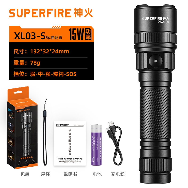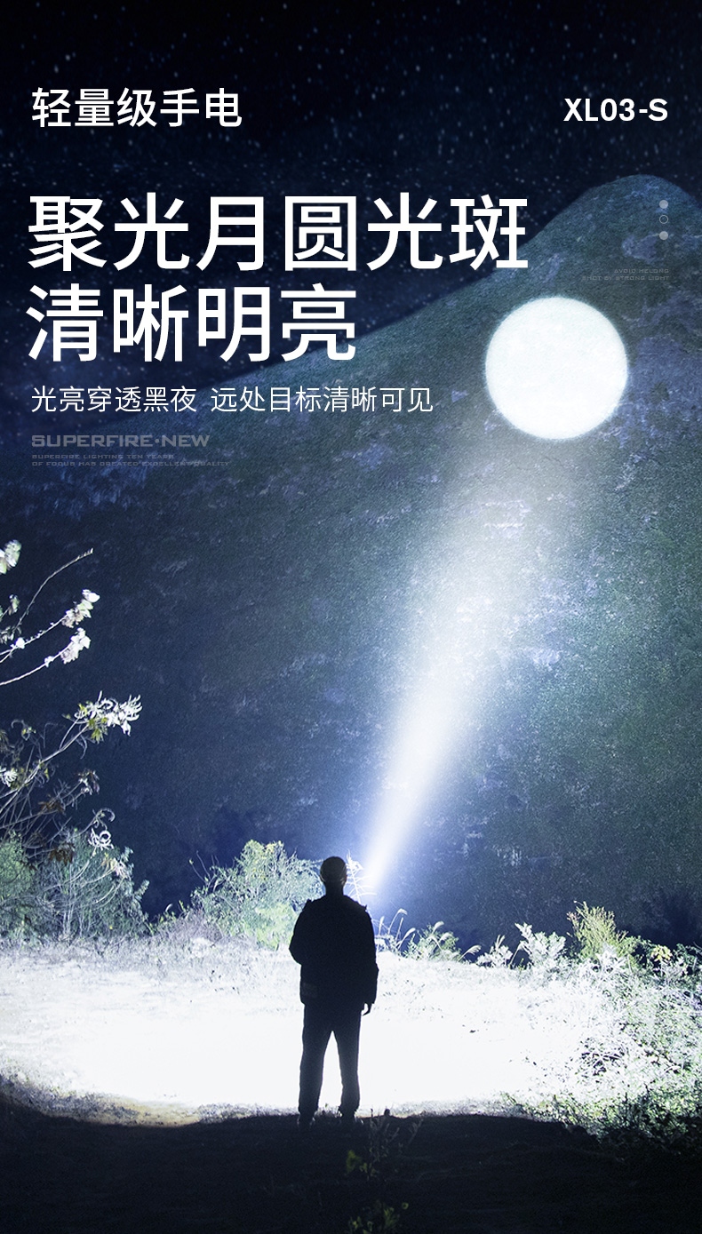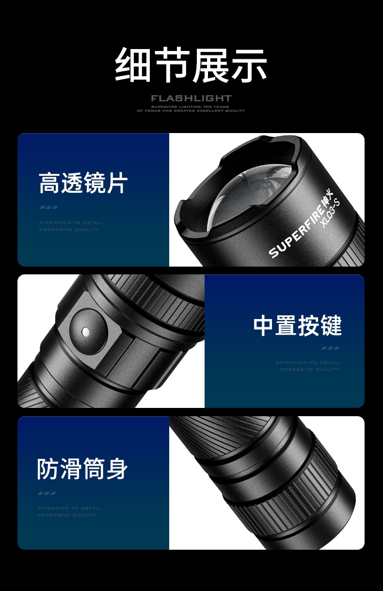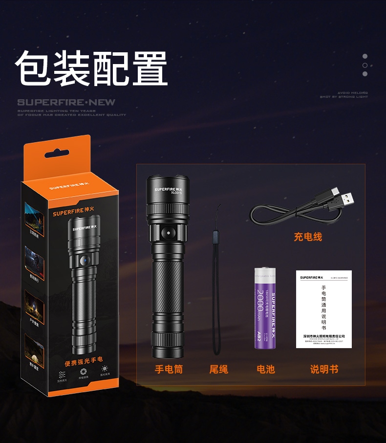 1、千米远射,射程更远,光斑更聚焦。 2、进口灯珠,亮度高,照明效果更好。 3、前后双按键,光源一键点亮,高亮瞬间开启。