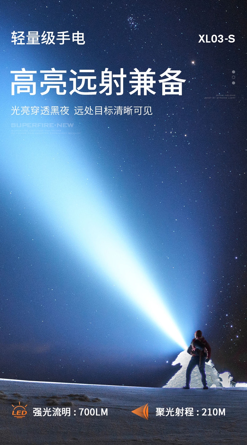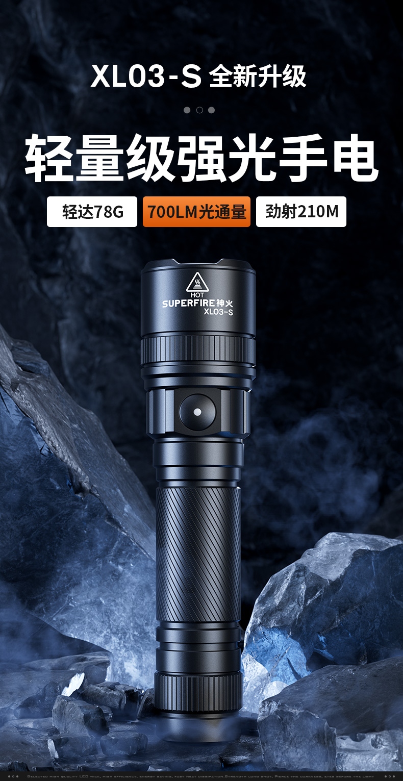 6、最高700Lm亮度,最远210m 射程,小身材大能量。