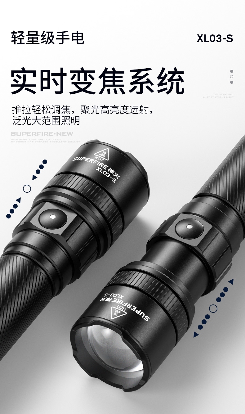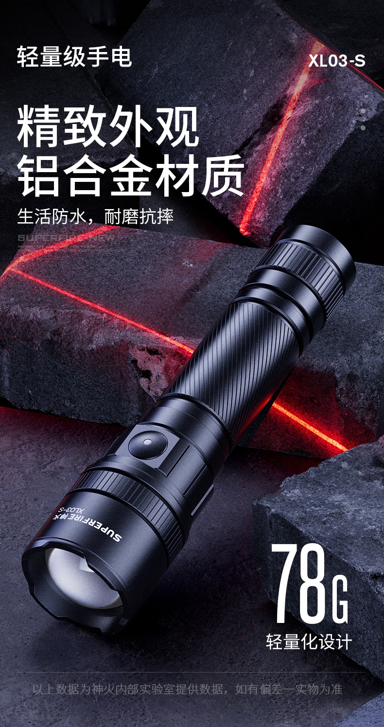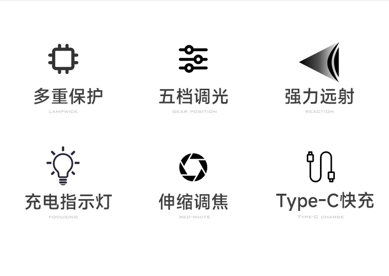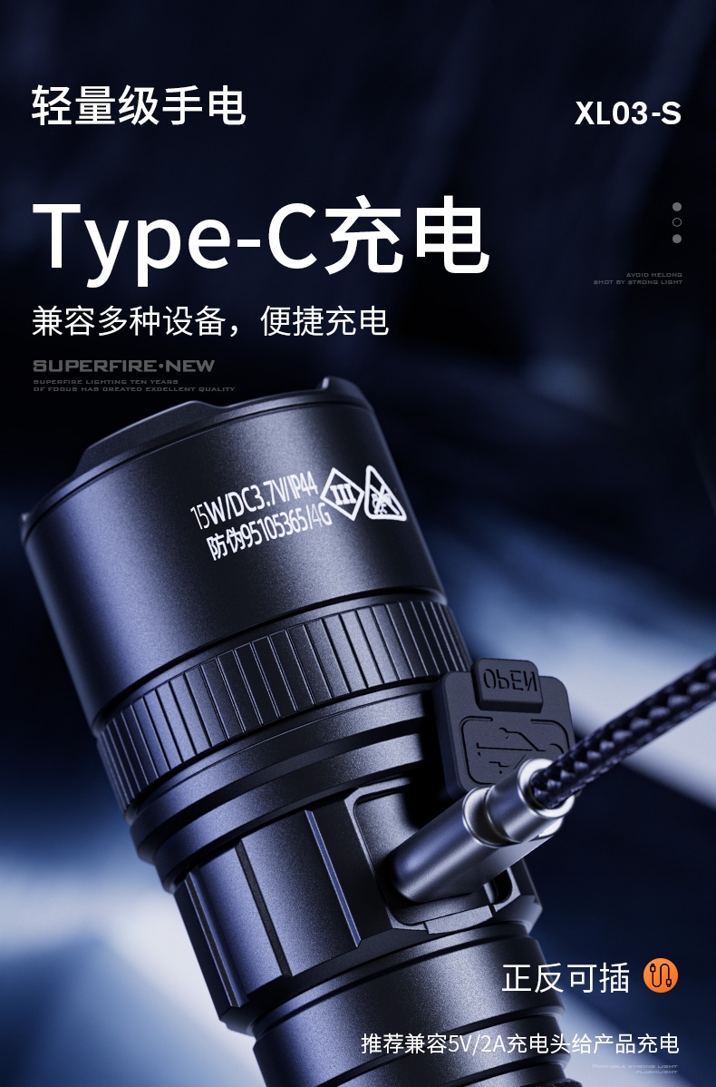1、伸缩调焦、聚泛随心。 2、Type-c充电,兼容市面通用充电线,可正反盲插。