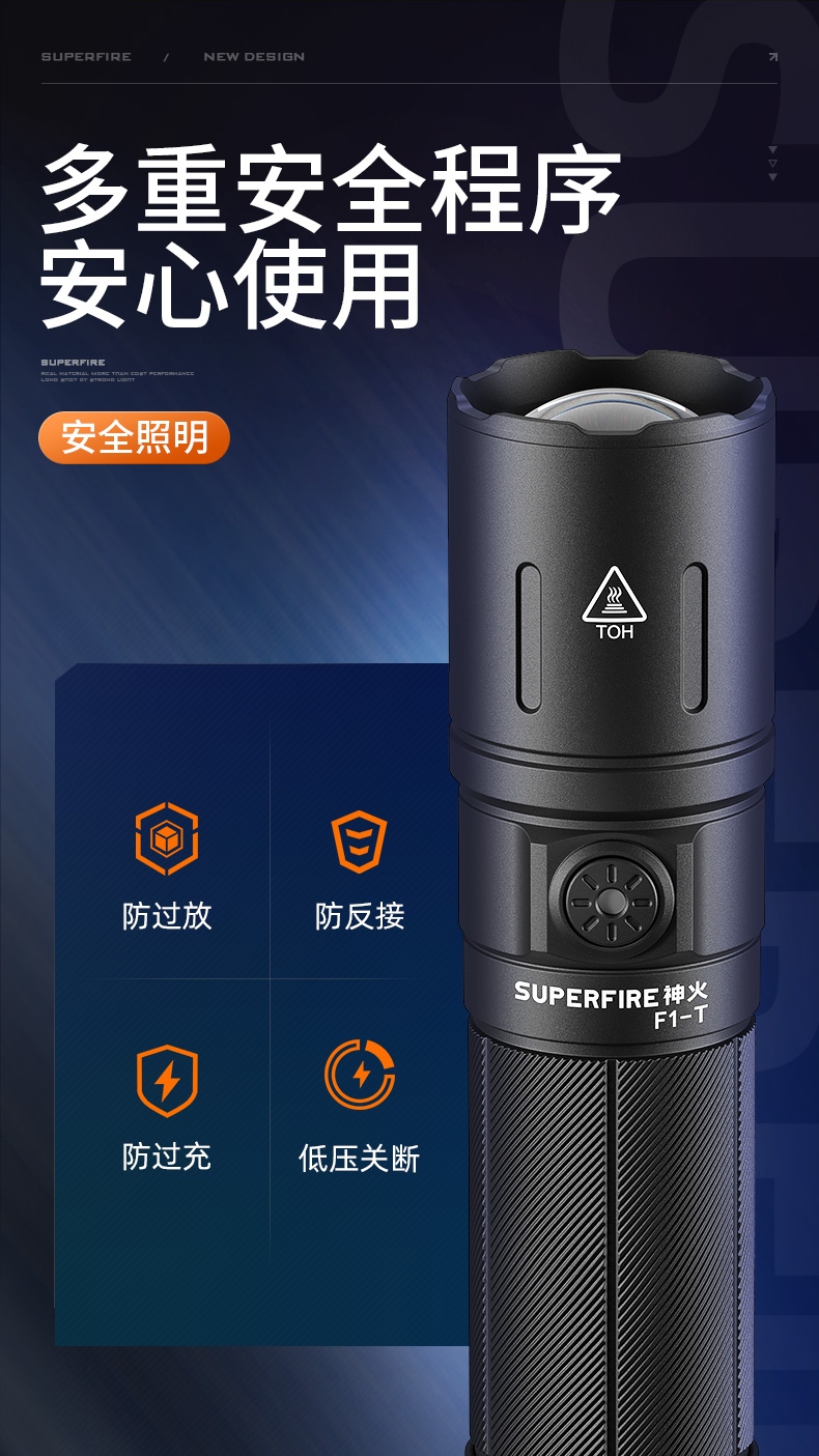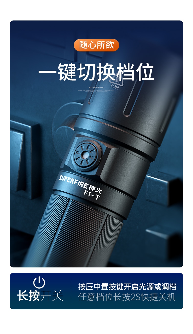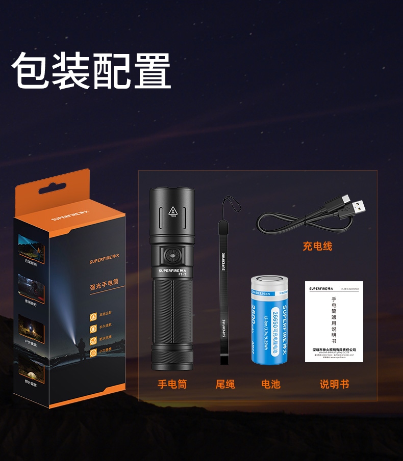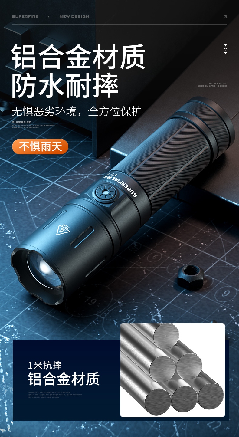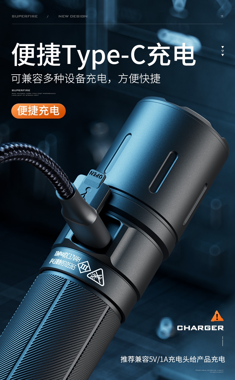 四档调光 Type-C充电 电量显示 铝合金筒身 持久续航 强力防水