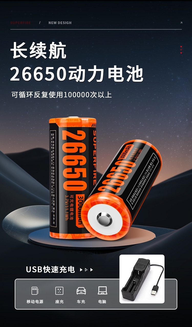 四档调光 Type-C充电 电量显示 铝合金筒身 持久续航 强力防水