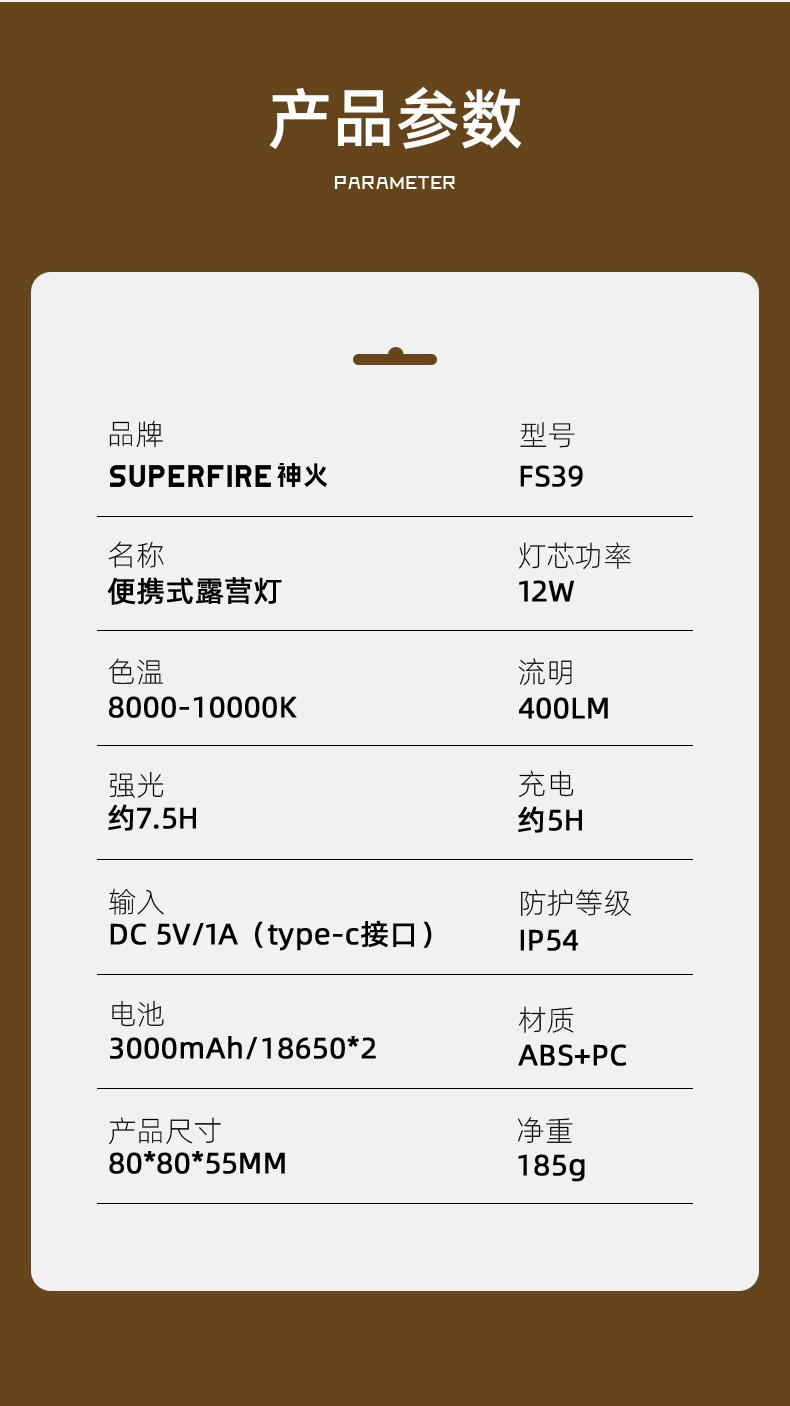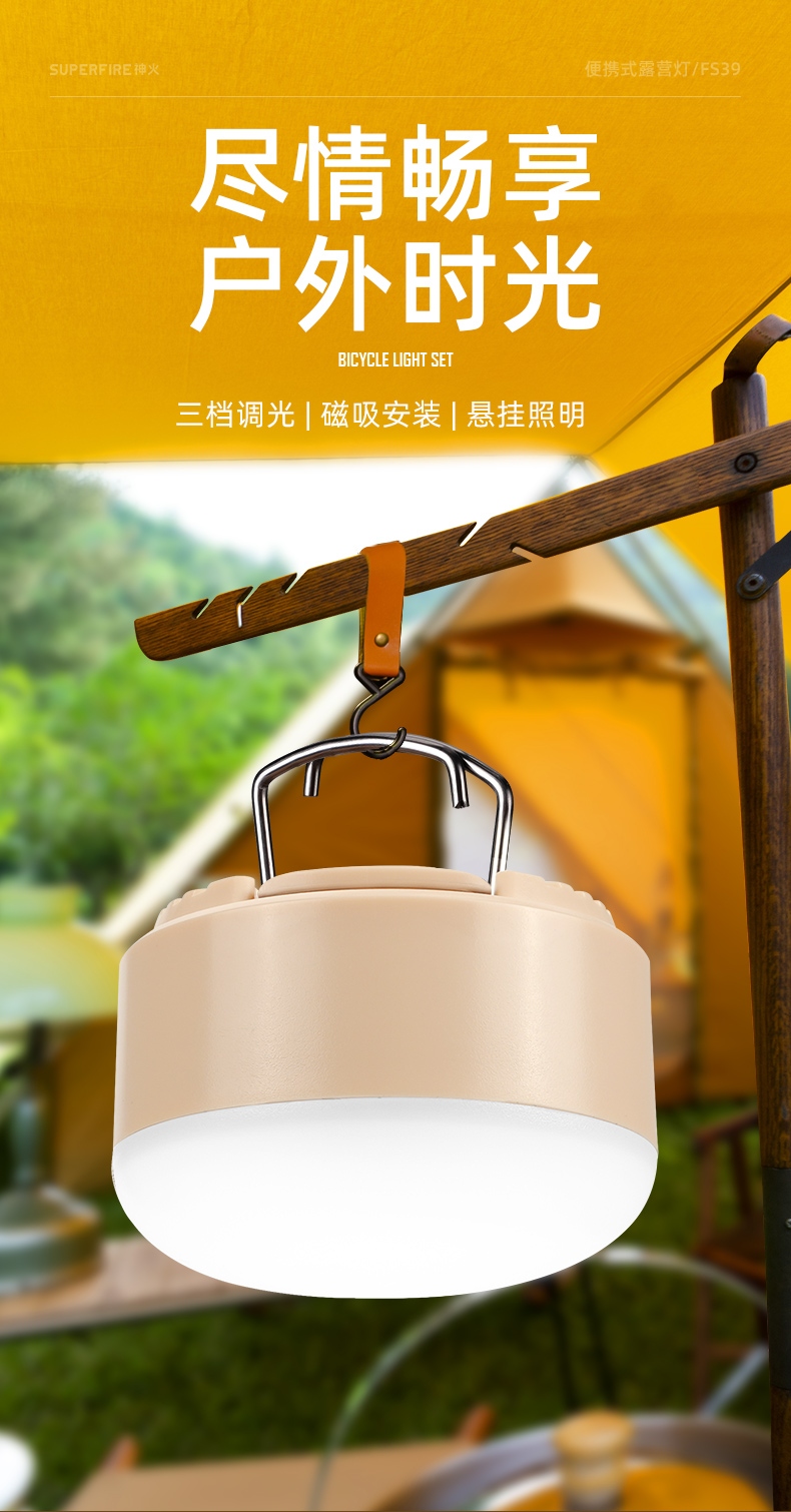 可以悬挂于账篷,强光可作照明灯,弱光可作灯笼使用